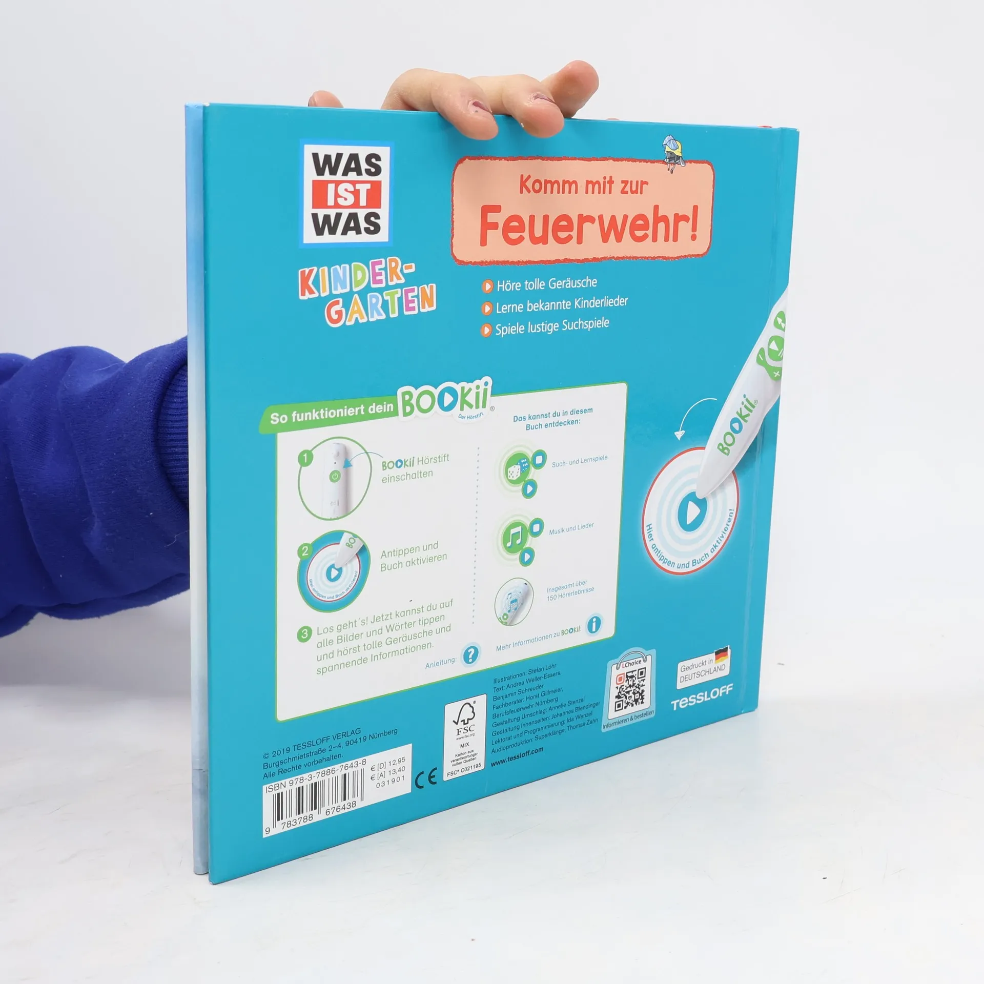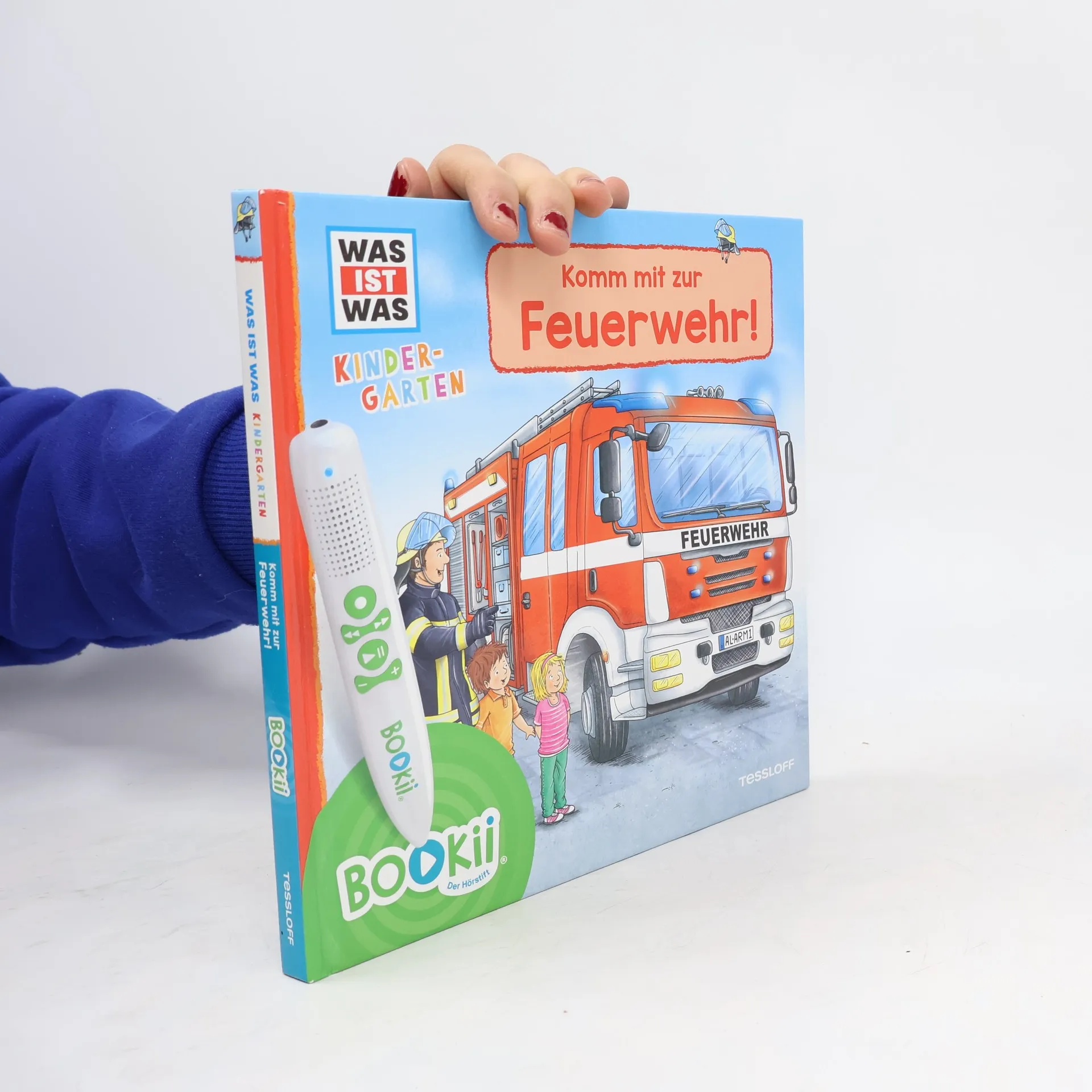 Wenn die knallroten Feuerwehrautos mit blinkendem Blaulicht auf den Straßen unterwegs sind, ziehen sie alle Blicke auf sich. Das Thema „Feuerwehr“ fasziniert daher schon Kinder im Kindergartenalter. Mit dem BOOKii Hörstift erleben die Kinder hautnah die Atmosphäre, wenn die Feuerwehr zu einem Einsatz gerufen wird, hören die Sirenen heulen und können den Dialogen zwischen den Feuerwehrleuten und den geretteten Personen lauschen. Alle Texte und Bilder im Buch sind vertont, so dass die Kleinen selbständig auf Entdeckungsreise durch das Feuerwehr-Buch gehen können. Mit interaktivem Spiel und vielen stabilen Klappen. Der BOOKii® Hörstift ist nicht im Lieferumfang des Produkts enthalten. Er ist separat im Handel erhältlich.