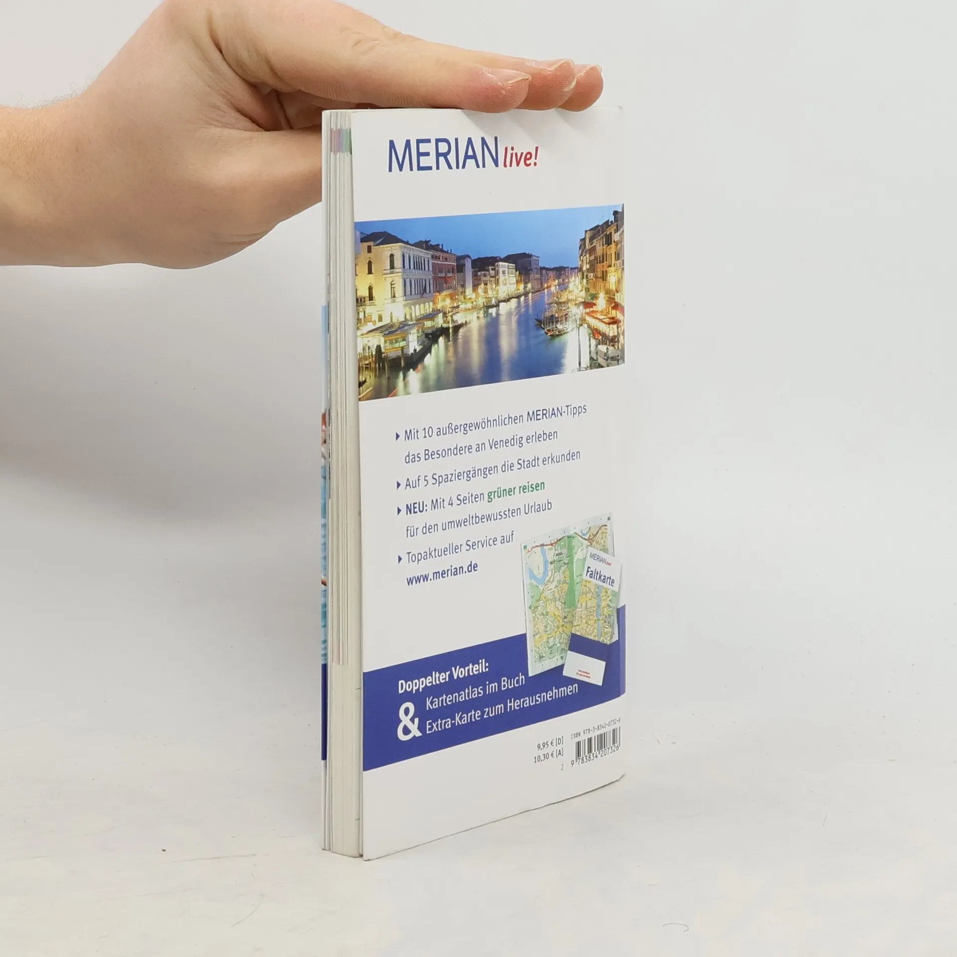 Lange war Venedig auf seine märchenhafte Kulisse beschränkt. Heute präsentiert sich die Lagunenstadt als Kunstmetropole des 21. Jahrhunderts. Romanische Goldmosaiken, gotische Altargemälde und barocke Fresken, Industriearchitektur des 19. Jahrhunderts und Moderne: ein komplettes Kunstbrevier. MERIAN live! bietet: - Fundierte Beschreibungen aller wichtigen Sehenswürdigkeiten und Museen - Sorgfältig ausgewählte Hotel- und Restaurantempfehlungen, Ausgeh- und Shoppingadressen sowie Tipps für Familien - Empfehlungen für den umweltbewussten Urlaub im Kapitel grüner reisen - 10 MERIAN-TopTen stellen die Höhepunkte der Stadt vor - 10 MERIAN-Tipps führen zu den unbekannten Seiten der Stadt - Karte der Bootsanleger (Vaporetti) zur schnellen Orientierung - Doppelter Vorteil: Kartenatlas im Buch und Extra-Karte zum Herausnehmen