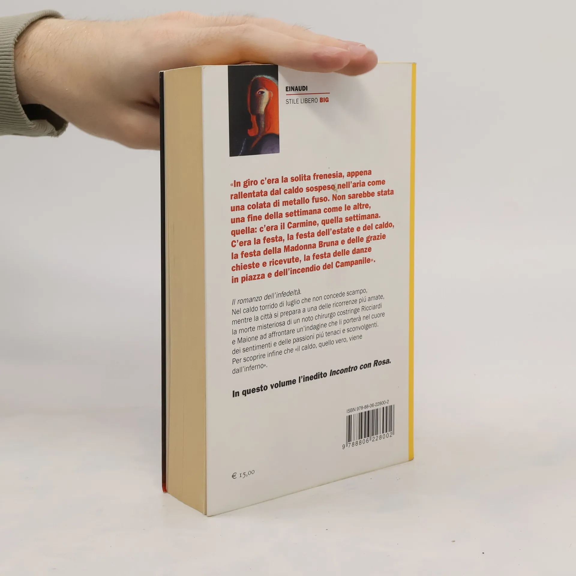 Il romanzo dell'infedeltà. Nel caldo torrido di luglio che non concede scampo, mentre la città si prepara a una delle ricorrenze piú amate, la morte misteriosa di un noto chirurgo costringe Ricciardi e Maione ad affrontare un'indagine che li porterà nel cuore dei sentimenti e delle passioni più tenaci e sconvolgenti. Per scoprire infine che «il caldo, quello vero, viene dall'inferno». *** In nuova edizione l'intero ciclo del commissario Ricciardi. In ogni volume, in postfazione, l'autore dialoga con uno dei suoi personaggi: lo stesso Ricciardi, che ha il dono, o la condanna, di vedere i morti di morte violenta e di percepirne l'ultimo pensiero; il brigadiere Maione, suo compagno di avventure; Bambinella, il femminiello che sa tutte le voci della città; il razionale, umanissimo dottor Modo; Enrica, l'amore impossibile; Livia, dall'inquietante, avvolgente bellezza; Rosa, che per tutta la vita ha avuto cura di lui come una madre.