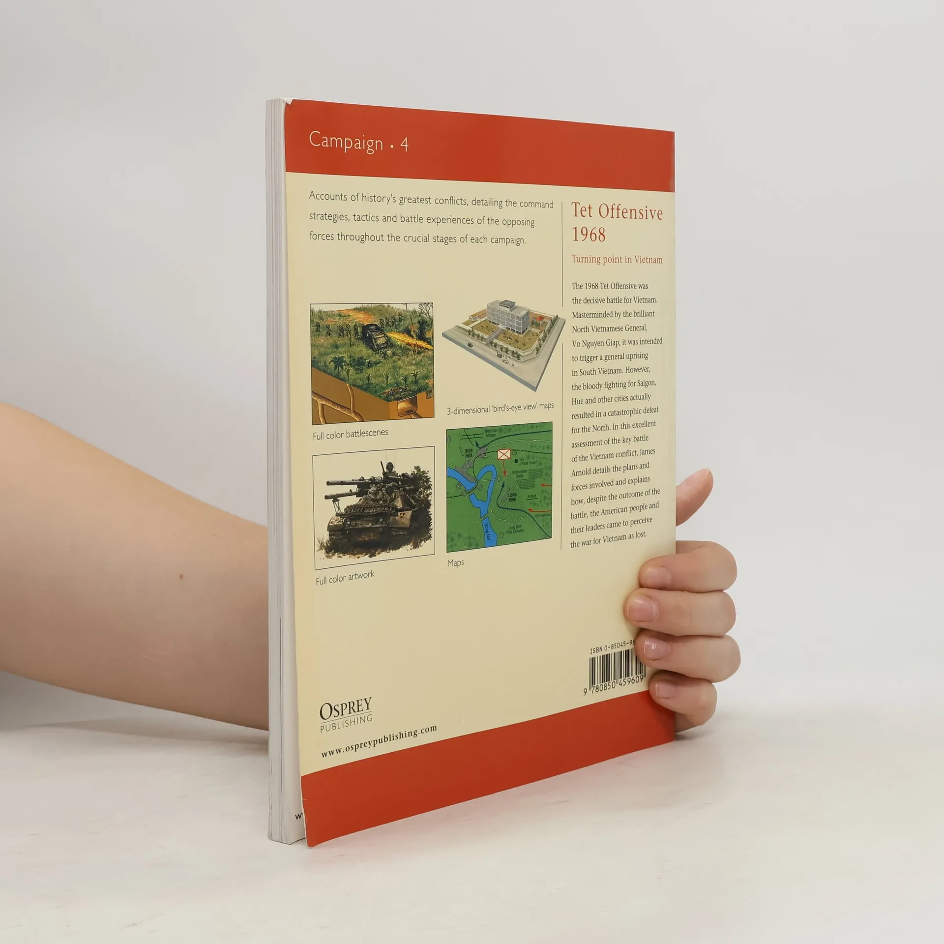 Osprey's study of the 1968 Tet Offensive, which was the decisive battle for Vietnam (1955-1975). Masterminded by the brilliant North Vietnamese General, Vo Nguyen Giap, it was intended to trigger a general uprising in South Vietnam. However, the bloody fighting for Saigon, Hue and other cities actually resulted in a catastrophic defeat for the North. In this excellent assessment of the key battle of the Vietnam conflict, James Arnold details the plans and forces involved and explains how, despite the outcome of the battle, the American people and their leaders came to perceive the war for Vietnam as lost.