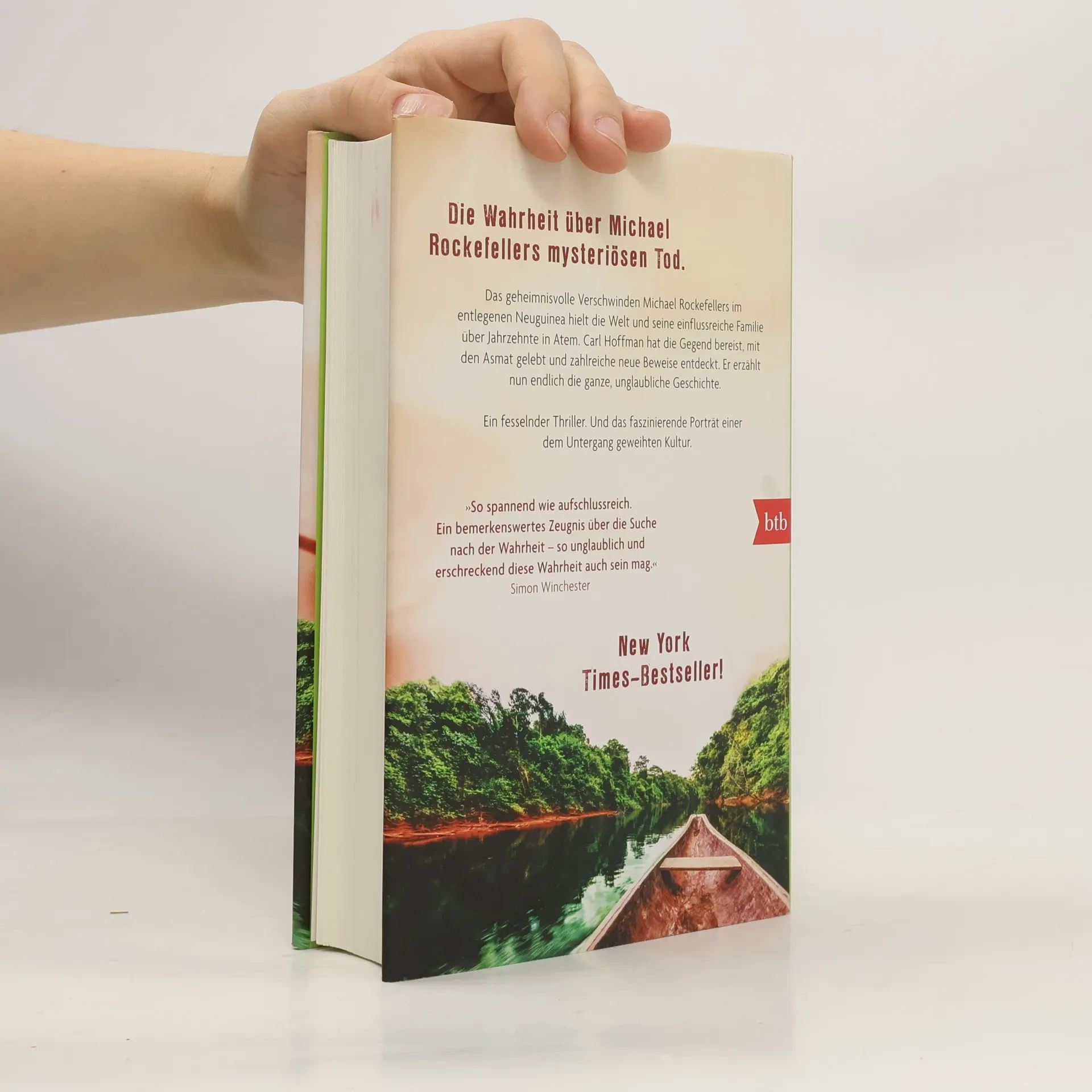 Die Wahrheit über Rockefellers mysteriösen Tod. Er verschwand 1961 in West-Neuguinea. Spurlos. Das Schicksal von Michael Rockefeller, Sohn des New Yorker Gouverneurs und US-Vizepräsidenten, ist eines der großen Mysterien unserer Zeit. Fiel er Kannibalen zum Opfer? War es ein Krokodilangriff? Die Spekulationen rissen nicht ab. Bis heute. Carl Hoffman hat das Rätsel gelöst. Er reiste auf Rockefellers Spuren. Wohnte monatelang bei den Asmat. Sprach mit Augenzeugen, die nach 50 Jahren zu sprechen bereit waren und begab sich in eine Welt der Kopfgeldjäger und Kannibalen, geheimnisvoller Riten und Bräuche.