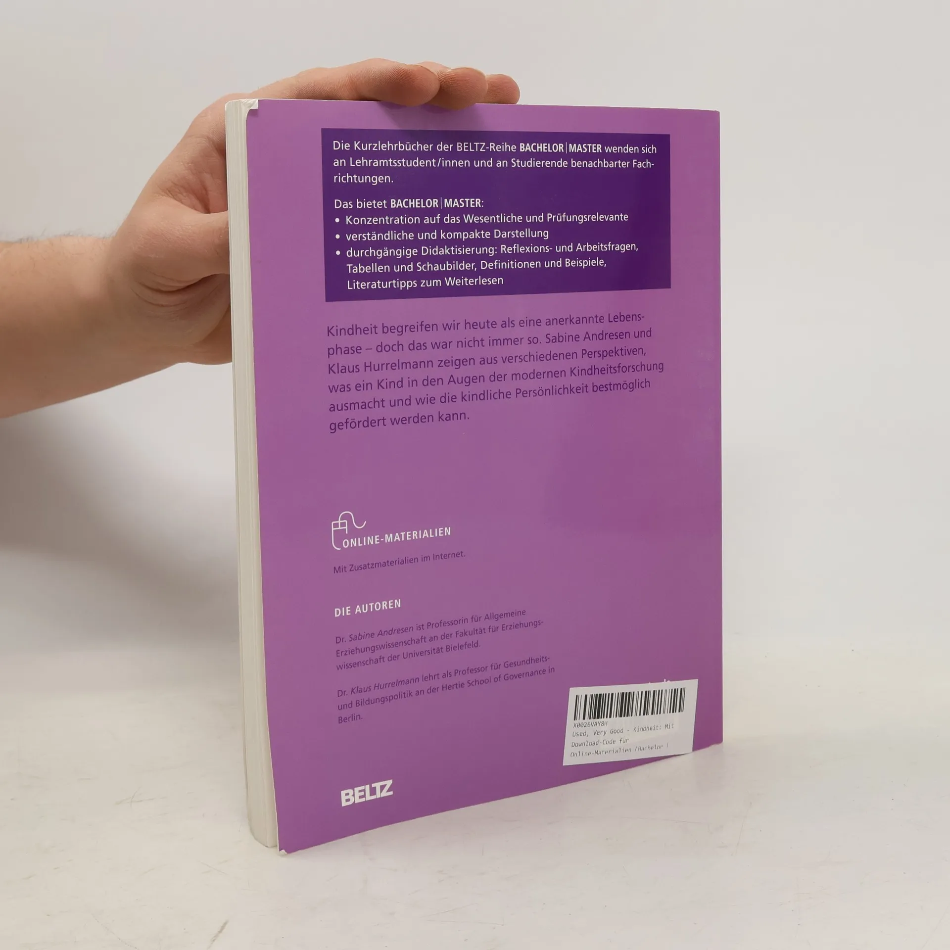 Kindheit begreifen wir heute als eine anerkannte Lebensphase – doch das war nicht immer so. Dem heutigen Kindheitsbegriff ging ein Entwicklungsprozess voraus, der die »veränderte Kindheit« zu einem zentralen Thema der Lehrerbildung macht. Sabine Andresen und Klaus Hurrelmann zeigen aus verschiedenen Perspektiven, was ein Kind aus der Sicht der modernen Kindheitsforschung ausmacht. Das Kurzlehrbuch beschreibt, wie sich die kindliche Persönlichkeit entwickelt und welche Impulse aus der sozialen Umwelt hierfür am günstigsten sind. Aus dem Inhalt • Kindheit als erste Phase im Lebenslauf • Persönlichkeitsentwicklung • Bildungseinrichtungen und Lebensbereiche • Risiken des Aufwachsens • Methoden der Kindheitsforschung • Kinderrechte und Kinderpolitik