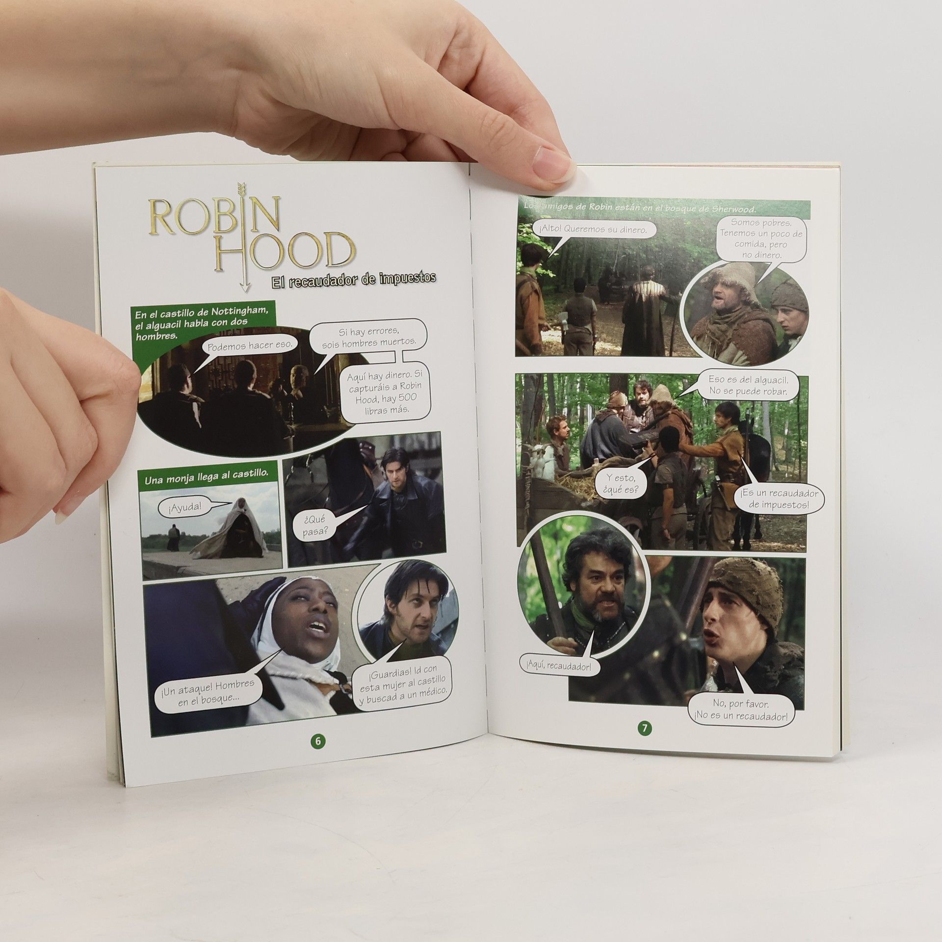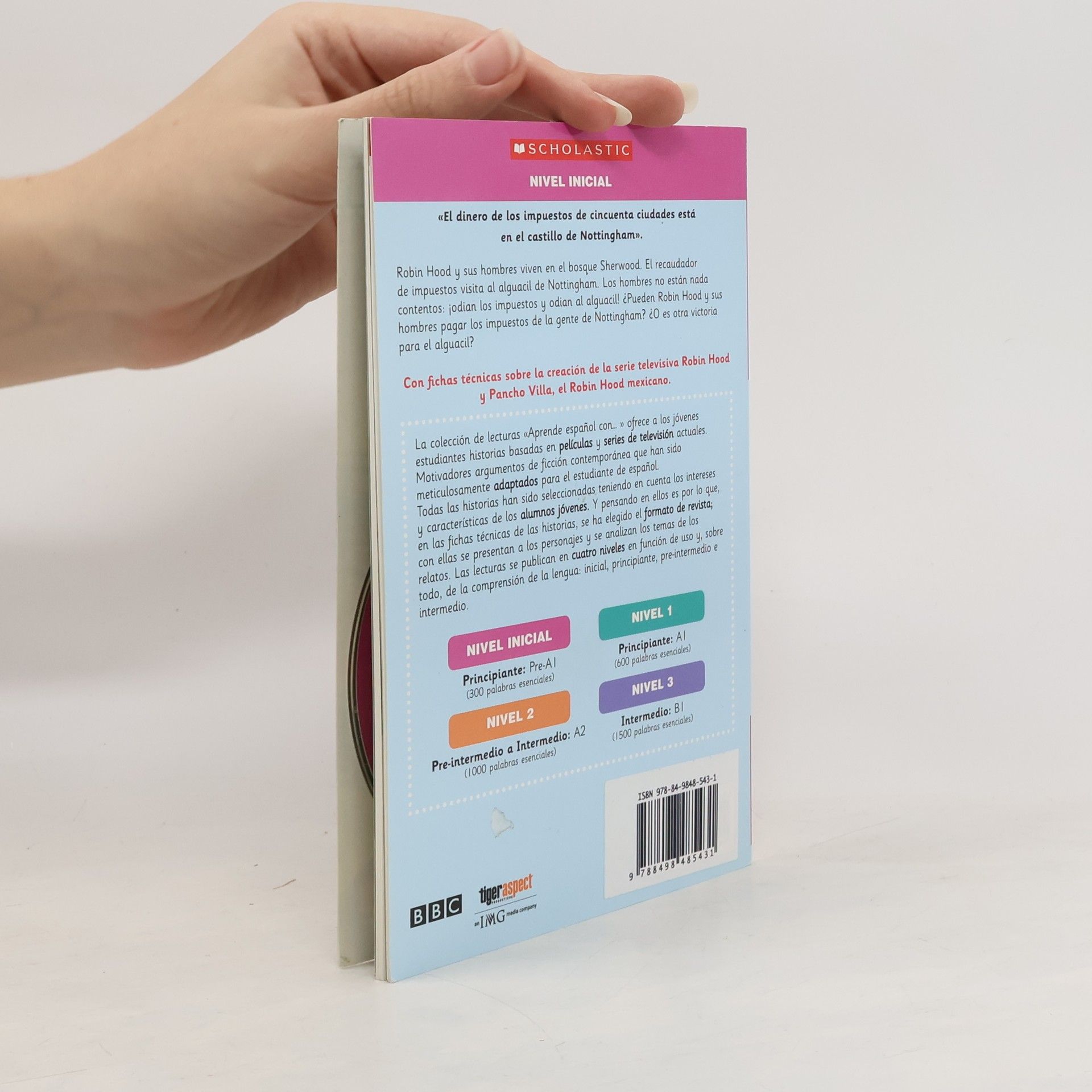 Low Beginning. Robin Hood and his band of men live in Sherwood Forest, outlaws under the unfair reign of the Sherriff of Nottingham. Can Robin Hood and his men defend the people of Nottingham, or will the Sherriff score another victory? From the reader series Aprende Español Con..., which features stories based on modern films and television series, carefully adapted for Spanish language students. Includes an Audio CD of the text, supplementary materials for teachers, and before and after activities for students.