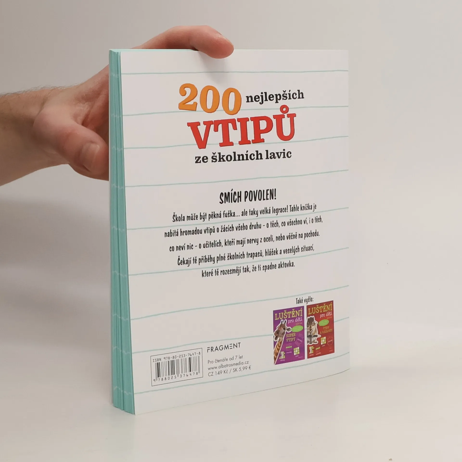 Škola může být pěkná fuška… ale taky velká legrace! Tahle knížka je nabitá hromadou vtipů o žácích všeho druhu – o těch, co všechno ví, i o těch, co neví nic – o učitelích, kteří mají nervy z oceli, nebo věčně na pochodu. Čekají tě školní trapasy, hlášky a veselé situace, které tě rozesmějí tak, že ti spadne aktovka.