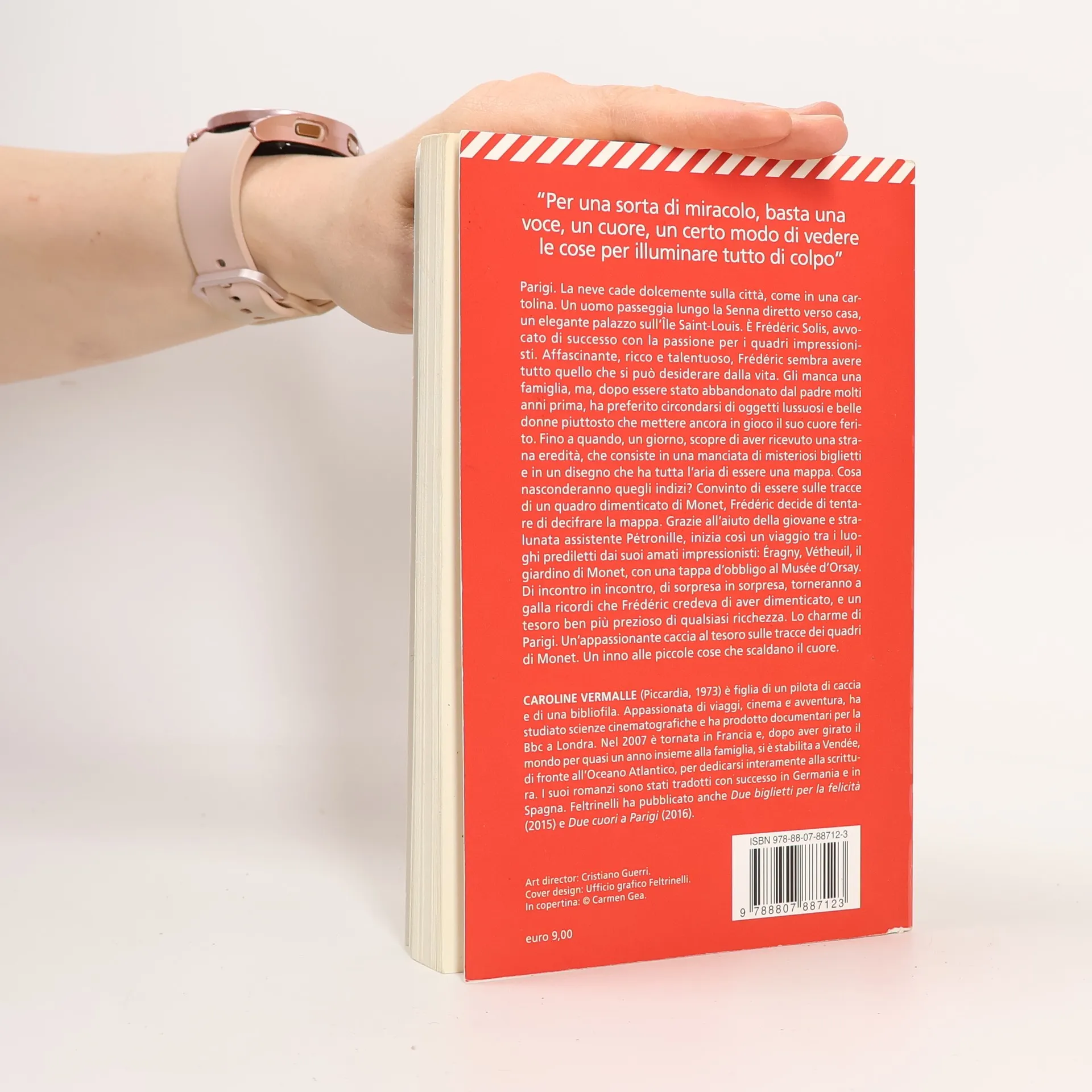 Parigi. La neve cade dolcemente sulla città, ammantando di bianco la Tour Eiffel, Notre-Dame e il Panthéon, come in una cartolina. Un uomo passeggia lungo la Senna diretto verso casa, un elegante palazzo sull’Île Saint-Louis. È Frédéric Solis, avvocato di successo con la passione per i quadri impressionisti. Affascinante, ricco e talentuoso, Frédéric sembra avere tutto quello che si può desiderare dalla vita. Gli manca una famiglia, ma dopo essere stato abbandonato dal padre molti anni prima, ha preferito circondarsi di oggetti lussuosi e belle donne piuttosto che mettere ancora in gioco il suo cuore ferito. Fino a quando, un giorno, scopre di aver ricevuto una strana eredità, che consiste in una manciata di misteriosi biglietti e in un disegno che ha tutta l’aria di essere una mappa. Cosa nasconderanno quegli indizi? Convinto di essere sulle tracce di un quadro dimenticato di Monet, Frédéric decide di tentare di decifrare la mappa. Grazie all’aiuto della giovane e stralunata assistente Pétronille, inizia così un viaggio lungo i paesaggi innevati del Nord della Francia, tra i luoghi prediletti dai suoi amati impressionisti: Éragny, Vétheuil, il giardino di Monet, con una tappa d’obbligo al Musée d’Orsay. Di incontro in incontro, di sorpresa in sorpresa, torneranno a galla ricordi che Frédéric credeva di aver dimenticato, e un tesoro ben più prezioso di qualsiasi ricchezza.