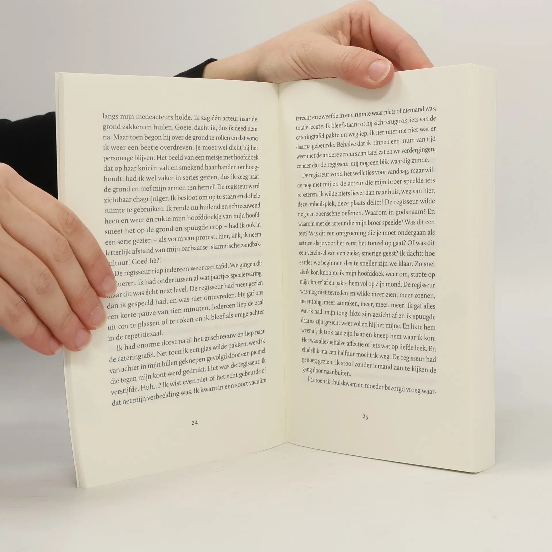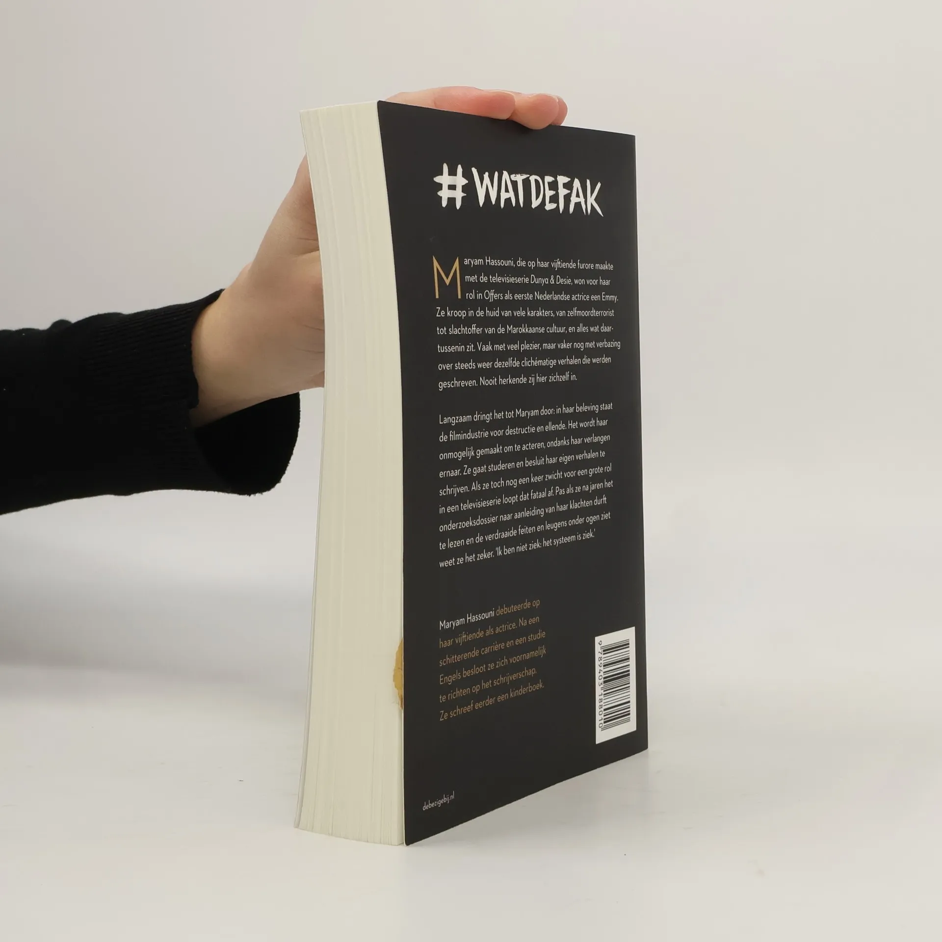 Maryam Hassouni, die op haar vijftiende furore maakte met de televisieserie 'Dunya en Desie', won voor haar rol in 'Offers' als eerste Nederlandse actrice een Emmy. Ze kroop in de huid van vele karakters, van zelfmoordterrorist tot slachtoffer van de Marokkaanse cultuur, en alles wat daartussenin zit. Vaak met veel plezier, maar vaker nog met verbazing over steeds weer dezelfde clichématige verhalen die werden geschreven. Nooit herkende zij hier zichzelf in.0Langzaam dringt het tot Maryam door: in haar beleving staat de filmindustrie voor destructie en ellende. Het wordt haar onmogelijk gemaakt om te acteren, ondanks haar verlangen ernaar. Ze gaat studeren en besluit haar eigen verhalen te schrijven. Als ze toch nog een keer zwicht voor een grote rol in een televisieserie loopt dat fataal af.0Pas als ze na jaren het onderzoeksdossier naar aanleiding van haar klachten durft te lezen en de feiten onder ogen ziet weet ze het zeker. "Ik ben niet het monster: het systeem is ziek".00Maryam Hassouni debuteerde op haar vijftiende als actrice. Na een schitterende carrière en een studie Engels besloot ze zich volledig te richten op het schrijverschap. Ze schreef eerder een kinderboek.