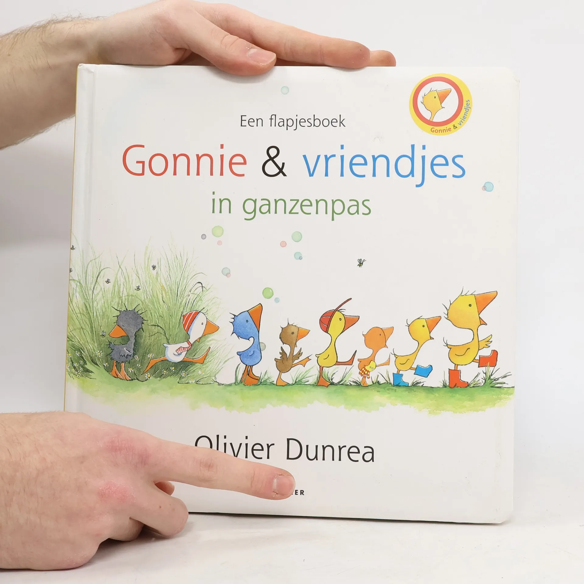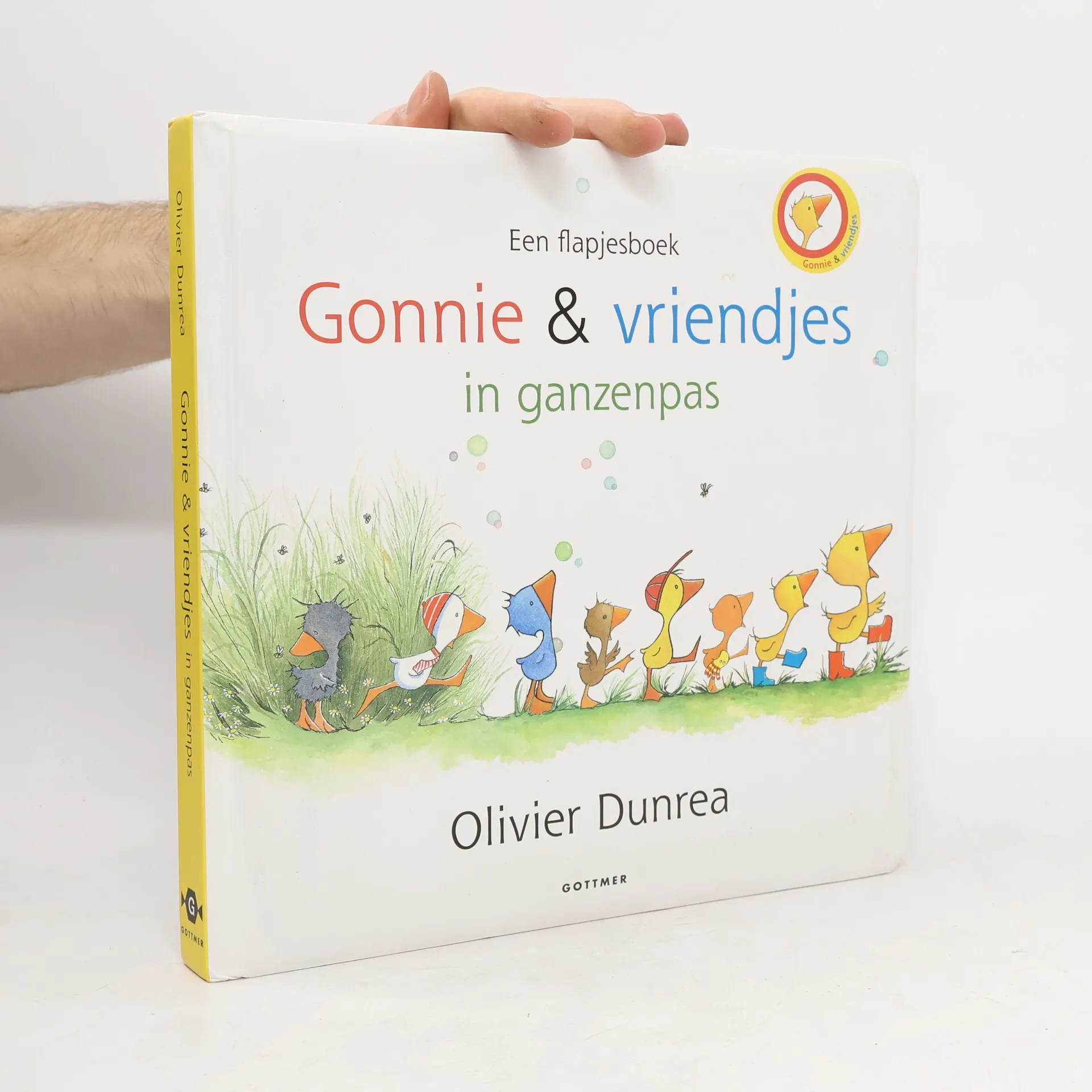 Gansje Gonnie en haar vriendjes laten zien waar ze wonen, wat voor weer het is, wat voor kleur ze zijn en welke dieren ze allemaal kennen. Groot, vierkant kartonnen prentenboek met eenvoudige kleurenillustraties en veel flapjes. Vanaf ca. 1,5 jaar.