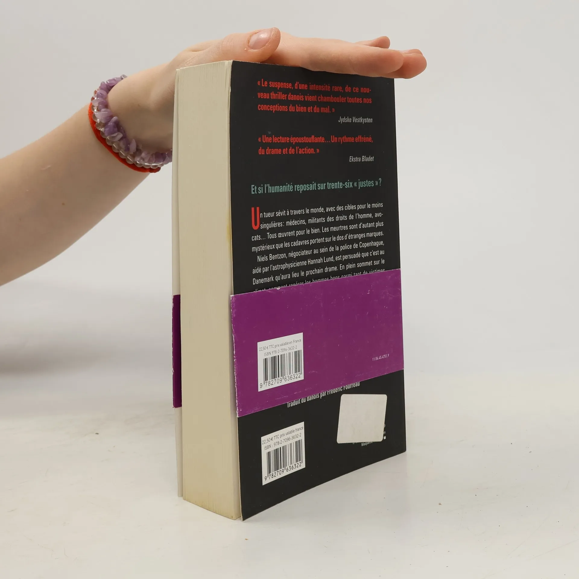 Et si le sort de l'humanité reposait sur trente-six "justes" ? Et qu'adviendrait-il si un assassin se mettait à les traquer ? - Un tueur sévit à travers le monde, avec des cibles pour le moins singulières : médecins, militants des droits de l'homme, avocats...Tous oeuvrent pour le bien. Les victimes sont retrouvées chaque fois avec une suite de nombres sur le dos. Niels Bentzon, négociateur au sein de la police de Copenhague, est persuadé que c'est au Danemark qu'aura lieu le prochain drame. Mais qui sera la prochaine victime ? Aidé par une astrophysicienne, Niels va tenter de décrypter les brûlures laissées sur les victimes. Personne ne prend au sérieux ces deux personnages un peu fêlés, pourtant brillants, dont la quête devient des plus en plus impossible... -<br /><br /><br />* Un thriller captivant qui a reçu le Prix Relay des voyageurs lecteurs 2011. * Près de 20 000 ex vendus en grand format chez Lattès.Un bestseller au Danemark, pays d'origine des 2 co-auteurs qui se cachent derrière le nom d'écrivain. * Sélection Prix des lecteurs 2012. * Campagne de publicité presse au lancement. * Mise en avant dans notre guide des lectures de l'été et notre catalogue polar. * Mini-site sur livredepoche.com.