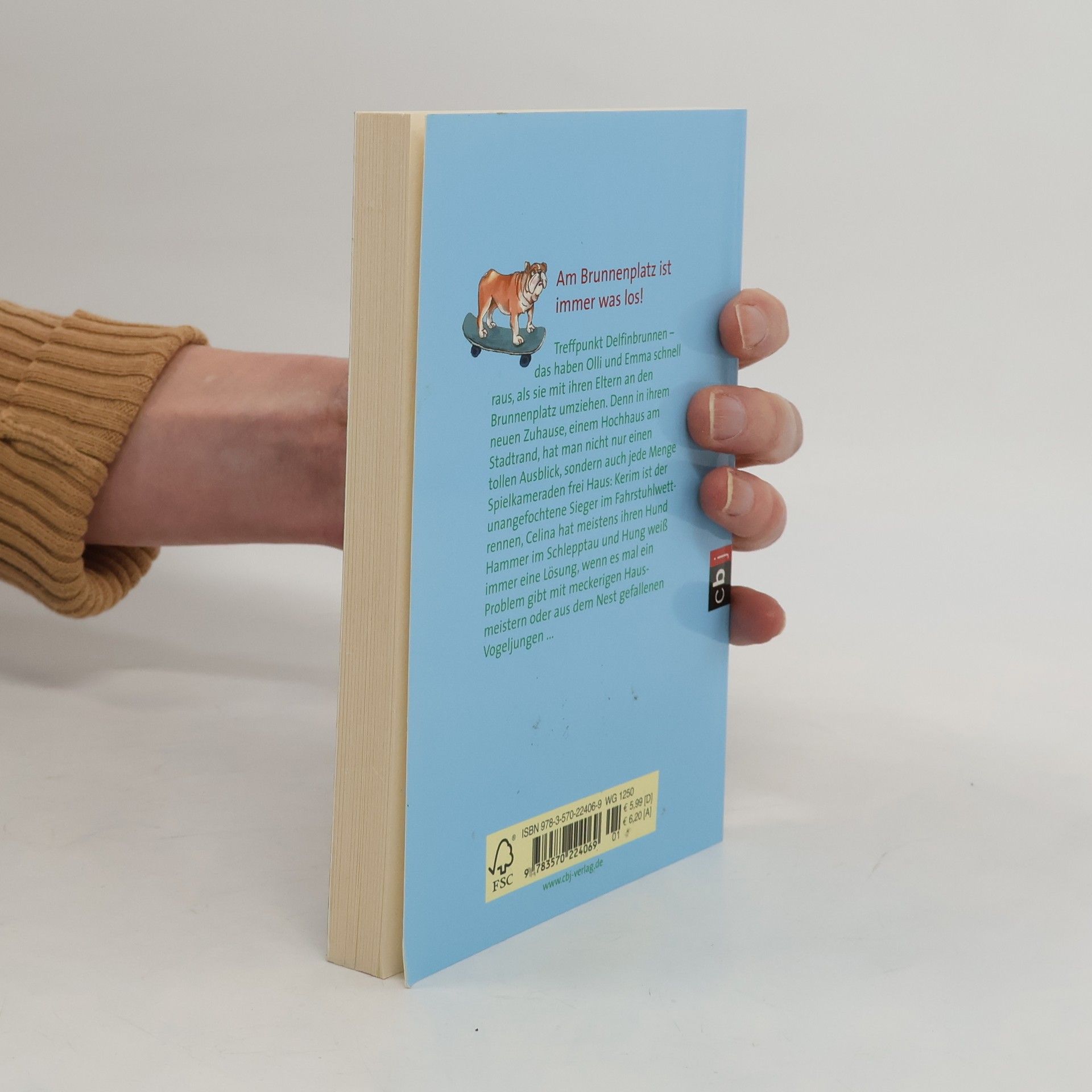 Am Brunnenplatz ist immer was los! Treffpunkt Delfinbrunnen! Das haben Olli und Emma schnell raus, als sie mit ihren Eltern an den Brunnenplatz umziehen. Denn in ihrem neuen Zuhause, einem Hochhaus am Stadtrand, hat man nicht nur einen tollen Ausblick, sondern auch jede Menge Spielkameraden frei Haus: Kerim ist der unangefochtene Sieger im Fahrstuhlwettrennen, Celina mag genauso gerne Tiere wie Emma und hat meistens ihren Hund Hammer im Schlepptau, der kleine Benni hält seine Babysitterin Violetta auf Trab und Hung weiß immer eine Lösung, wenn es mal ein Problem gibt mit meckerigen Hausmeistern oder aus dem Nest gefallenen Vogeljungen.