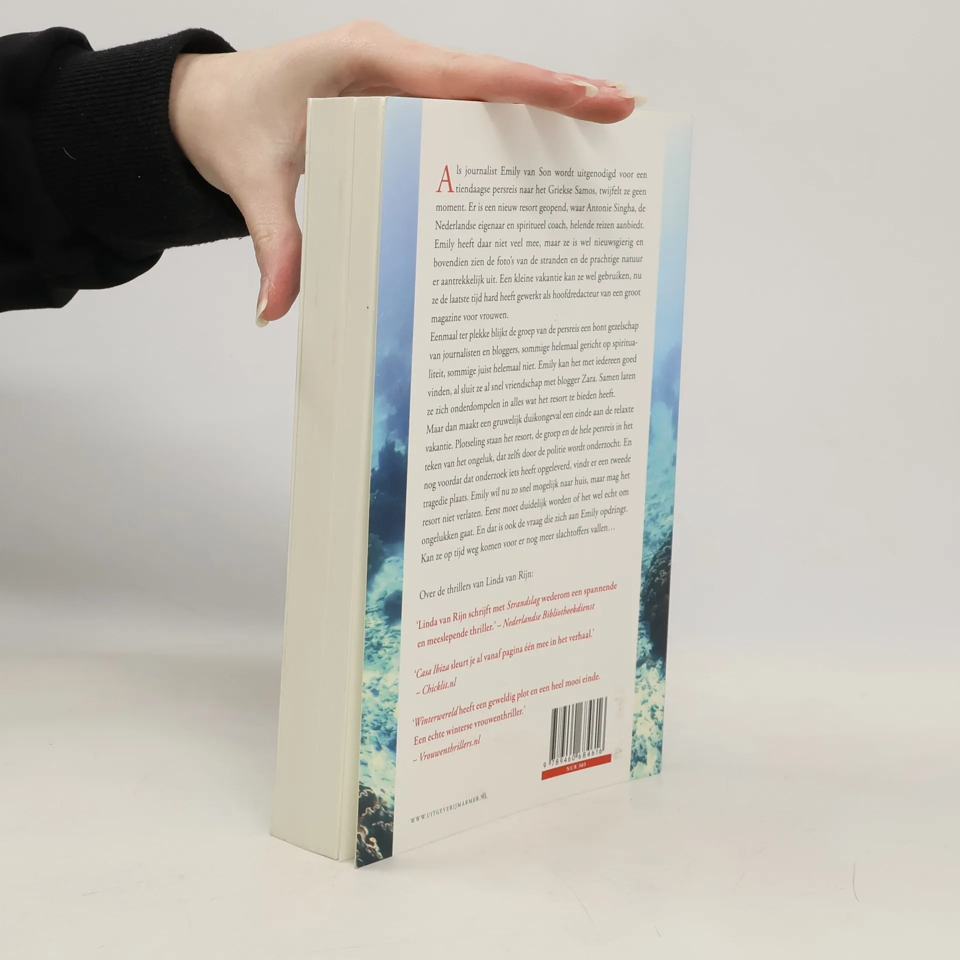Als journalist Emily van Son wordt uitgenodigd voor een tiendaagse persreis naar het Griekse Samos, twijfelt ze geen moment. Er is een nieuw resort geopend, waar Antonie Singha, de Nederlandse eigenaar en spiritueel coach, helende reizen aanbiedt. Emily heeft daar niet veel mee, maar ze is wel nieuwsgierig en bovendien zien de foto’s van de stranden en de prachtige natuur er aantrekkelijk uit. Een kleine vakantie kan ze wel gebruiken, nu ze de laatste tijd hard heeft gewerkt als hoofdredacteur van een groot magazine voor vrouwen.Eenmaal ter plekke blijkt de groep van de persreis een bont gezelschap van journalisten en bloggers, sommigen helemaal gericht op spiritualiteit, sommigen juist helemaal niet. Emily kan het met iedereen goed vinden, al sluit ze al snel vriendschap met blogger Zara. Samen laten ze zich onderdompelen in alles wat het resort te bieden heeft.Maar dan maakt een gruwelijk duikongeval een einde aan de relaxte vakantie. Plotseling staan het resort, de groep en de hele persreis in het teken van het ongeluk, dat zelfs door de politie wordt onderzocht. En nog voordat dat onderzoek iets heeft opgeleverd, vindt er een tweede tragedie plaats. Emily wil nu zo snel mogelijk naar huis, maar mag het resort niet verlaten. Eerst moet duidelijk worden of het wel echt om ongelukken gaat. En dat is ook de vraag die zich aan Emily opdringt. Kan ze op tijd weg komen voor er nog meer slachtoffers vallen…