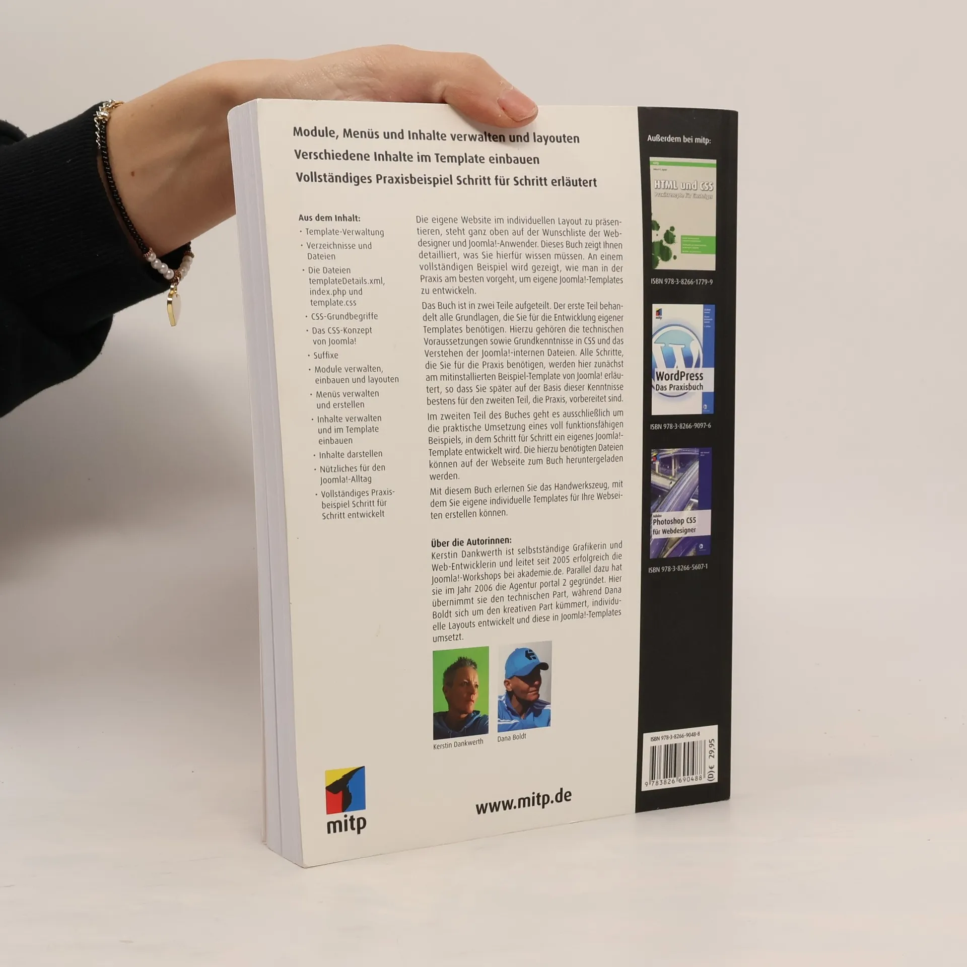 Module, Menüs und Inhalte verwalten und layouten, verschiedene Inhalte im Template einbauen – all dies wird Schritt für Schritt in einem vollständigen Praxisbeispiel erläutert. Der Inhalt umfasst die Template-Verwaltung, Verzeichnisse und Dateien, einschließlich templateDetails.xml, index.php und template.css. Grundbegriffe des CSS und das CSS-Konzept von Joomla! werden behandelt, ebenso wie die Verwaltung und Erstellung von Modulen und Menüs sowie die Einbindung von Inhalten ins Template. Das Buch zeigt, wie man individuelle Websites mit eigenen Joomla!-Templates erstellt, was für Webdesigner und Joomla!-Anwender von großer Bedeutung ist. Es ist in zwei Teile gegliedert: Der erste Teil vermittelt alle Grundlagen, die für die Template-Entwicklung nötig sind, einschließlich technischer Voraussetzungen und CSS-Kenntnisse. Hierbei wird zunächst das mitinstallierte Beispiel-Template von Joomla! verwendet, um die notwendigen Schritte zu erläutern. Der zweite Teil konzentriert sich auf die praktische Umsetzung eines funktionierenden Beispiels, in dem Schritt für Schritt ein eigenes Joomla!-Template entwickelt wird. Die benötigten Dateien sind auf der Webseite zum Buch verfügbar. Mit diesem Wissen können Sie individuelle Templates für Ihre Webseiten erstellen. Die Autorinnen, Kerstin Dankwerth und Dana Boldt, bringen umfangreiche Erfahrung in Grafikdesign und Web-Entwicklung mit.