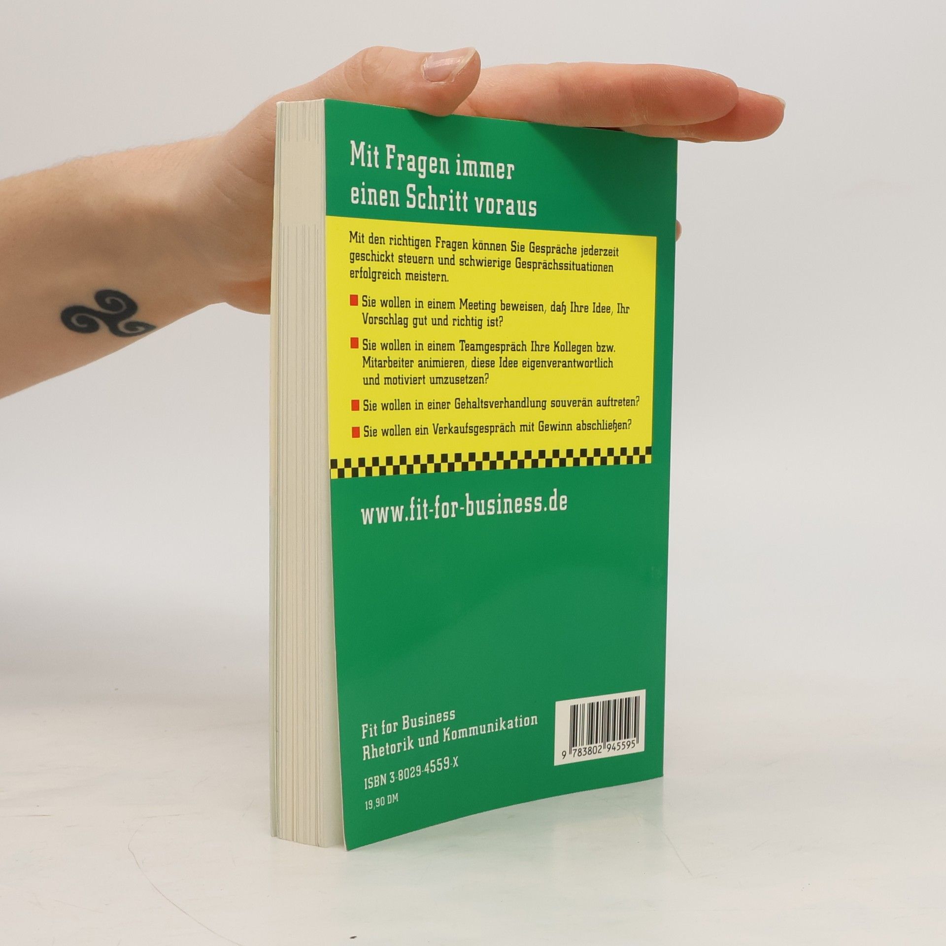 Mit Fragen immer einen Schritt vorausMit den richtigen Fragen können Sie Gespräche jederzeit geschickt steuern und schwierige Gesprächssituationen erfolgreich meistern. Sie wollen in einem Meeting beweisen, dass Ihre Idee, Ihr Vorschlag gut und richtig ist? Sie wollen in einem Teamgespräch Ihre Kollegen bzw. Mitarbeiter animieren, diese Idee eigenverantwortlich und motiviert umzusetzen? Sie wollen in einer Gehaltsverhandlung souverän auftreten? Sie wollen ein Verkaufsgespräch mit Gewinn abschließen?