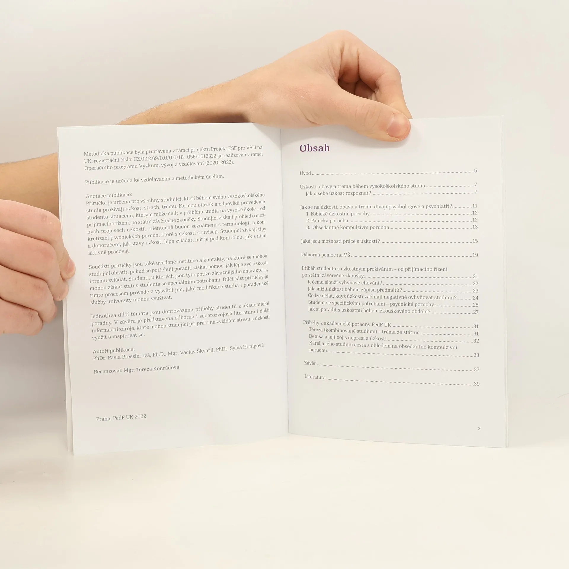 Úzkost, obavy a tréma během vysokoškolského studia, Pavla Presslerová, Václav Škvařil, Sylvia Hönigová