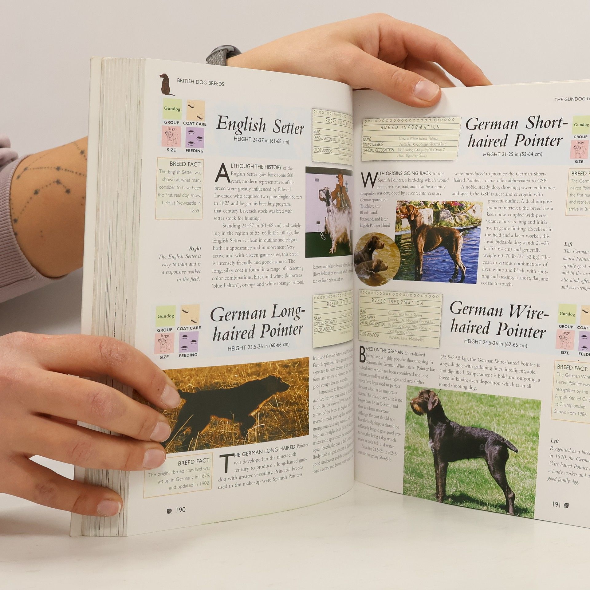 gorgeous full-color book with many articles on the worldwide history and life of dogs,information and color photos on over 400 dog breeds including description,care and history of each breed,dog breeds arranged by type and function and by country of origin very complete and informative book