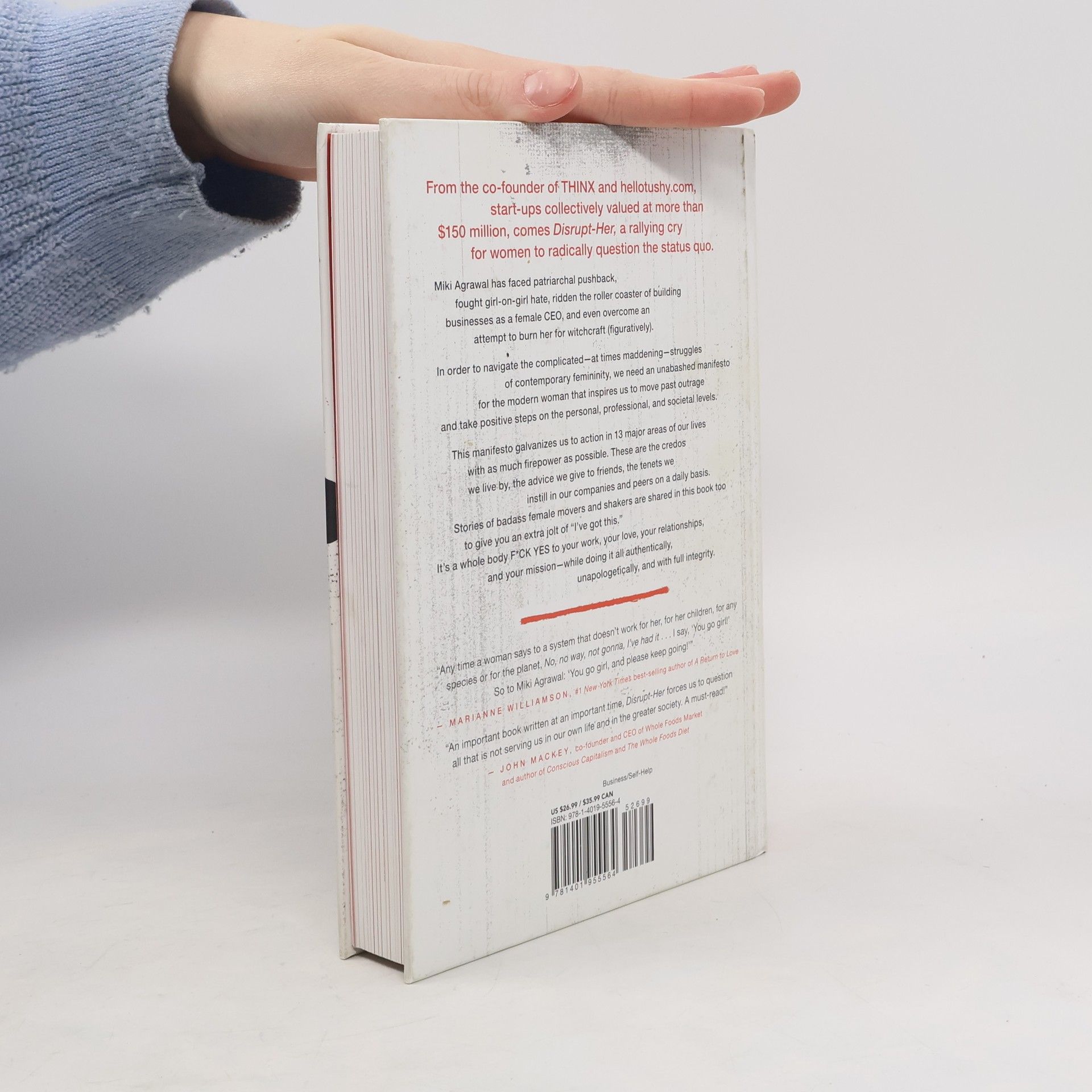 What are some of humanity’s greatest obstacles? Societal thinking. Indoctrination. Traditional “rules.” The “status quo.” In order to move humanity forward, we need a healthy dose of disruption . . . . . . But this time from a modern woman’s perspective. Disrupt-Her is a new kind of Manifesto that asks—no, demands—that women question, dissect, and disrupt 13 major areas of our lives, including societal preconceptions that keep us from living fully lit up, both personally and professionally. Miki Agrawal, the co-founder of THINX ( Fast Company ’s Most Innovative Companies of 2017, TIME ’s 25 Best New Inventions of 2015, and winner of Tribeca Film Festival’s Disruptive Innovation Awards) and TUSHY (called “the Apple product of bidets” by Forbes ), was named 2017 Young Global Leader by The World Economic Forum, INC Magazine’s Most Impressive Women Entrepreneurs of 2016, and Forbes ’s Top 20 Millennials on a Mission. She helps us look with fresh eyes at what it means to be wholeheartedly alive and to live up to our potential at work, at home, and in the world, regardless of the challenges and naysayers along the way. In this page-turning book, you’ll discover how to: · Dissect, declutter, and update internal thoughts and external habits that are currently holding you back · Start a movement that solves real problems and does good – even especially if you don’t have a lot of money, a college degree, or years of experience · Become a true “Warrior-Gatekeeper of your Mind” in all situations · Not let “Hate-Hers” derail you from your mission, and instead show them the way back to being “Love-Hers” · Create healthy relationships with men who are stuck in the old-fashioned patriarchy · Find and align with SNAGs (Secure New Age Guys) · Create a supportive, fun, caring community that stands by you no matter what Disrupt-Her is a first of its kind self-help/business book TELL-ALL that blends the jaw-dropping first person journey of a rising female entrepreneur with fresh life-improving techniques and new habit-forming ideas that make you go “wow.” The questions at the end of each chapter give you opportunities to apply what you’ve just read so you can customize them to your own circumstances to produce real-world results.