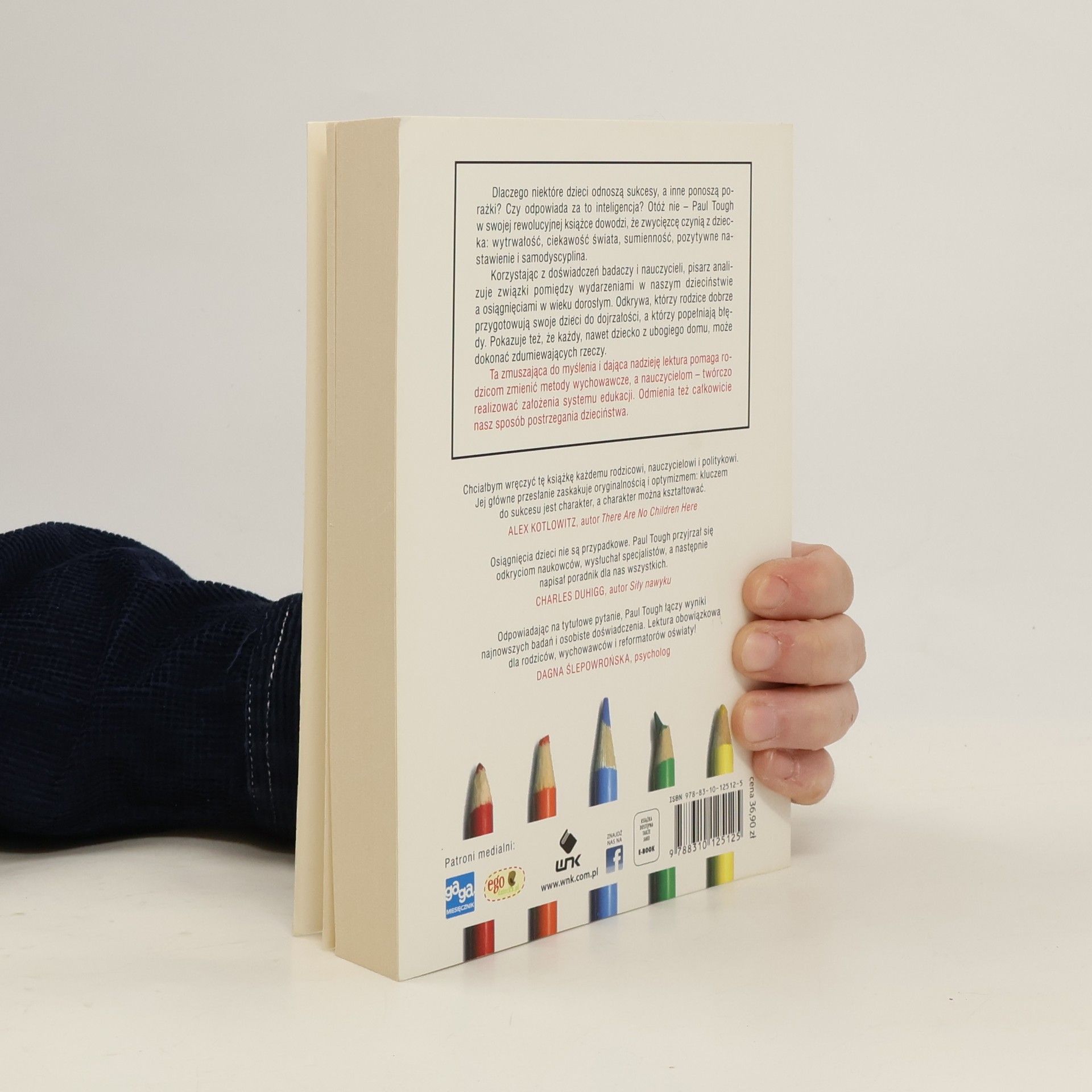 Dlaczego niektóre dzieci odnoszą sukcesy, a inne ponoszą porażki? Czy odpowiada za to inteligencja? Otóż nie – Paul Tough w swojej rewolucyjnej książce dowodzi, że zwycięzcę czynią z dziecka: wytrwałość, ciekawość świata, sumienność, pozytywne nastawienie i samodyscyplina. Korzystając z doświadczeń badaczy i nauczycieli, pisarz analizuje związki pomiędzy wydarzeniami w naszym dzieciństwie a osiągnięciami w wieku dorosłym. Odkrywa, którzy rodzice dobrze przygotowują swoje dzieci do dojrzałości, a którzy popełniają błędy. Pokazuje też, że każdy, nawet dziecko z ubogiego domu, może dokonać zdumiewających rzeczy. Ta zmuszająca do myślenia i dająca nadzieję lektura pomaga rodzicom zmienić metody wychowawcze, a nauczycielom – twórczo realizować założenia systemu edukacji. Odmienia też całkowicie nasz sposób postrzegania dzieciństwa. Chciałbym wręczyć tę książkę każdemu rodzicowi, nauczycielowi i politykowi. Jej główne przesłanie zaskakuje oryginalnością i optymizmem: kluczem do sukcesu jest osobowość, a osobowość można kształtować. Alex Kotlowitz, autor There Are No Children Here Osiągnięcia dzieci nie są przypadkowe. Paul Tough przyjrzał się odkryciom naukowców, wysłuchał specjalistów, a następnie napisał poradnik dla nas wszystkich. Charles Duhigg, autor Siły nawyku Odpowiadając na tytułowe pytanie, Paul Tough łączy wyniki najnowszych badań i osobiste doświadczenia. Lektura obowiązkowa dla rodziców, wychowawców i reformatorów oświaty! Dagna Ślepowrońska, psycholog