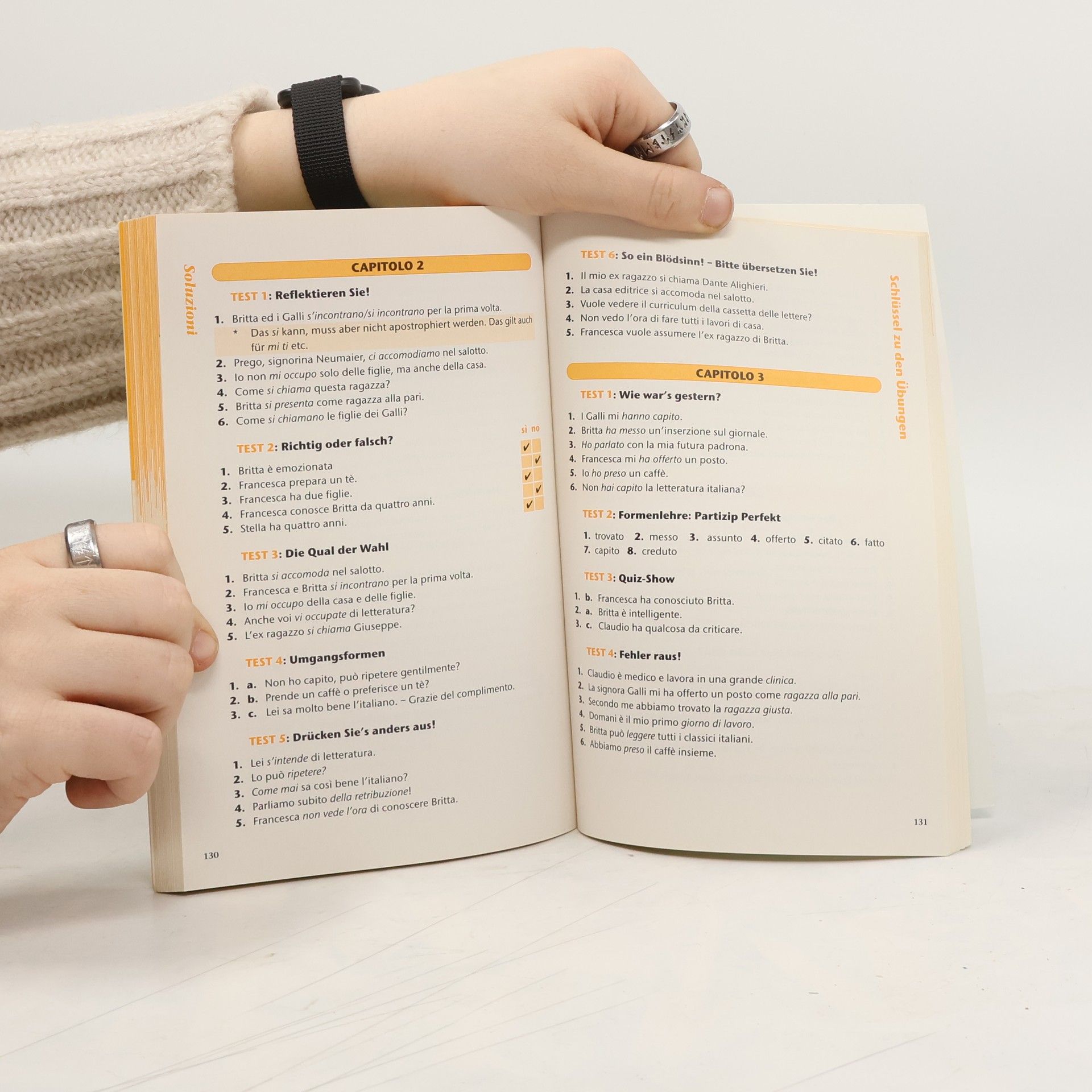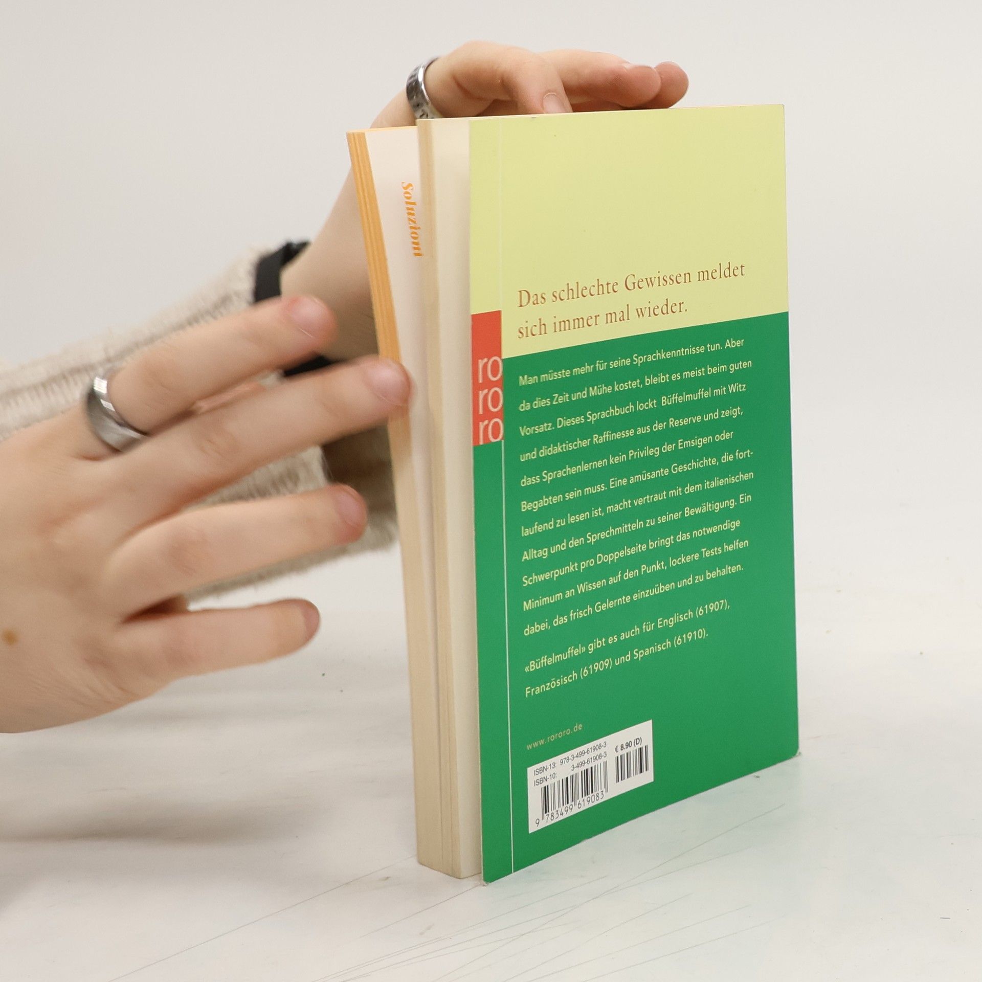 Das schlechte Gewissen meldet sich immer mal wieder. Man müsste mehr für seine Sprachkenntnisse tun. Aber da dies Zeit und Mühe kostet, bleibt es meist beim guten Vorsatz. Dieses Sprachbuch lockt Büffelmuffel mit Witz und didaktischer Raffinesse aus der Reserve und zeigt, dass Sprachenlernen kein Privileg der Emsigen oder Begabten sein muss. Eine amüsante Geschichte, die fortlaufend zu lesen ist, macht vertraut mit dem italienischen Alltag und den Sprechmitteln zu seiner Bewältigung. Ein Schwerpunkt pro Doppelseite bringt das notwendige Minimum an Wissen auf den Punkt, lockere Tests helfen dabei, das frisch Gelernte auszuüben und zu behalten. «Büffelmuffel» gibt es auch für Englisch (61907), Französisch (61909) und Spanisch (61910).