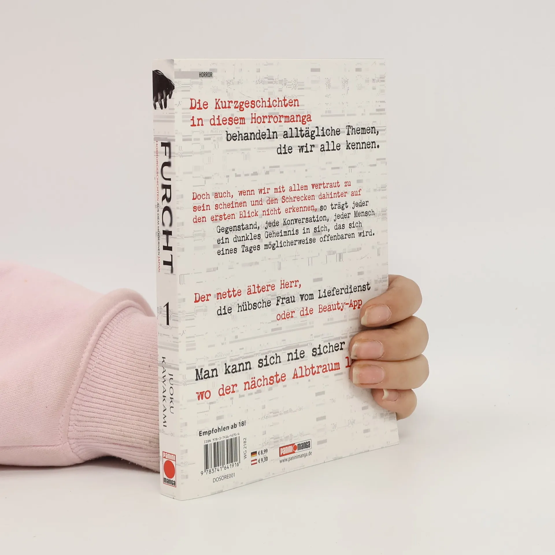 Die Kurzgeschichten in diesen Horrormanga behandeln alltägliche Themen, die wir alle kennen.Doch auch, wenn wir mit allem vertraut zu sein scheinen und den Schrecken dahinter auf den ersten Blick nicht erkennen, so trägt doch jeder Gegenstand, jede Konversation, jeder Mensch ein dunkles Geheimnis in sich, das sich eines Tages möglicherweise offenbaren wird.Der nette ältere Herr, die hübsche Frau vom Lieferdienst oder die Beauty-App …Man kann sich nie sicher sein, wo der nächste Albtraum lauert.Für Fans von Junji Ito und Kazuo Umezu!