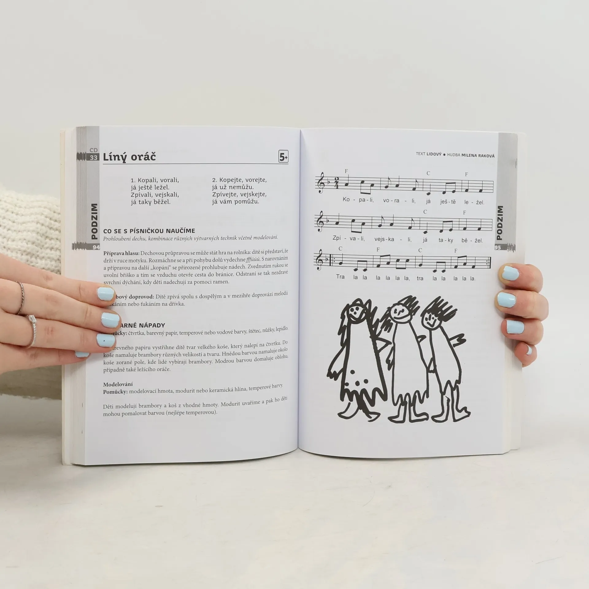 Zpívání patřilo vždy k oblíbeným činnostem, děti vnímají melodie už od kolébky. Kniha přináší náměty, jak pomocí her a zábavných činností učit děti od nejútlejšího věku vnímat zvuky a rytmus a naslouchat hudbě. Přes bezprostřední prožívání je vede k aktivnímu zpěvu. Kniha je členěna podle věku dítěte. Přináší 70 písniček; každá je doplněna náměty činností, které podporují muzikálnost, rozvíjejí zpěv a zároveň působí na citový vývoj dítěte, pěstují vnímavost, fantazii, pozornost i paměť, rozšiřují slovní zásobu, zlepšují jeho komunikaci s okolím i "odvahu" se projevit, dát najevo svůj prožitek. Některé písničky bude zpívat jen dospělý. Ty učí dítě naslouchat, povedou ho k vnímání nálady a charakteru písničky, k porozumění textu a k reagování pohybem, hrou "na tělo". Dítě případně může doprovodit jednoduchou hrou na snadno ovladatelné hudební nástroje (či "kuchyňské" náčiní - hrnce, pokličky, skleničky, vařečky). Jiné, jednoduché písně jsou svou melodií i textem vybrány přímo pro zpívání přiměřené jednotlivým věkovým skupinám.