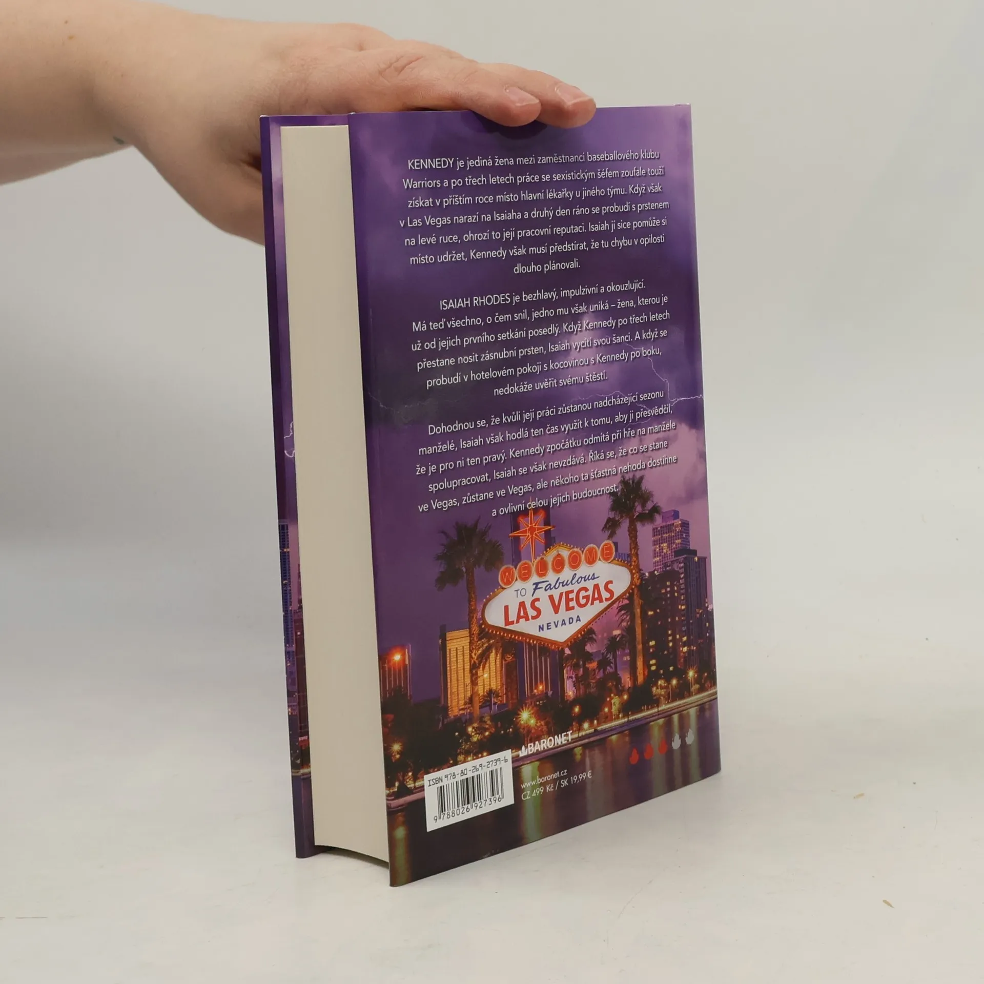 Co se stalo v Las Vegas, nemusí vždy zůstat v Las Vegas – někdy tě to zasáhne přímo do srdce! Kennedy je ve své práci sportovní lékařky pro baseballový tým v Chicagu vždy profesionální – až do jednoho nešťastného rána, kdy se probudí v Las Vegas s mezerami v paměti a snubním prstenem na prstu! Vedle ní leží Isaiah, neodolatelně pohledný a charismatický hráč, jehož flirtování už dlouho odolává. Aby zachránila svůj reputaci, souhlasí Kennedy s Isaiahovým návrhem, že zůstanou po dobu sezóny manželé. Co neví, je, že Isaiah má vlastní cíle. Chce své vysněné ženě konečně dokázat, že je pro ni ten pravý. Musí jen hrát svou roli… Sports Romance se setkává s Vegas Wedding a Fake Dating!