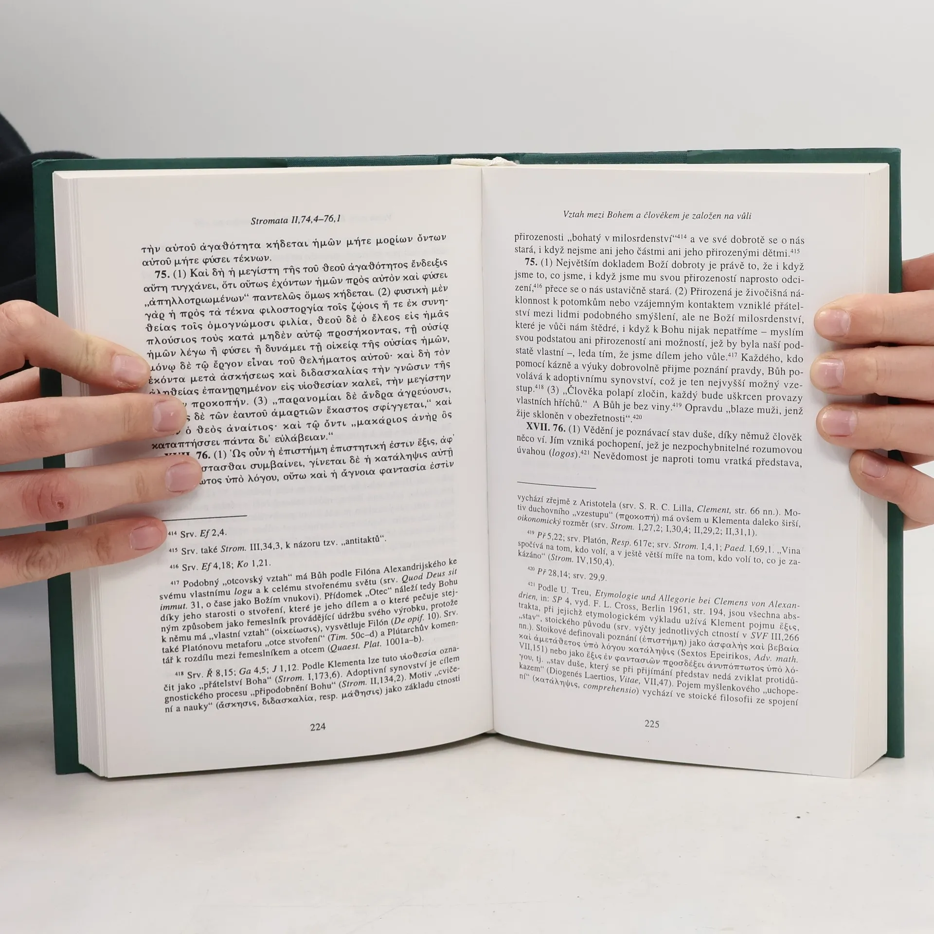 Další dvě části osmidílného pojednání významného představitele alexandrijské patristiky (zemř. asi r. 215), které na pozadí dialogu s filosofickou tradicí a heterodoxními naukami odkrývá etické a hermeneutické předpoklady křesťanské theologie. Druhá a třetí kniha pojednávají o víře jako předpokladu poznání a etice manželského života a celibátu. Český překlad v zrcadlovém řecko-českém vydání, komentář a úvodní studii připravili M. Šedina, V. Černušková, J. Plátová.