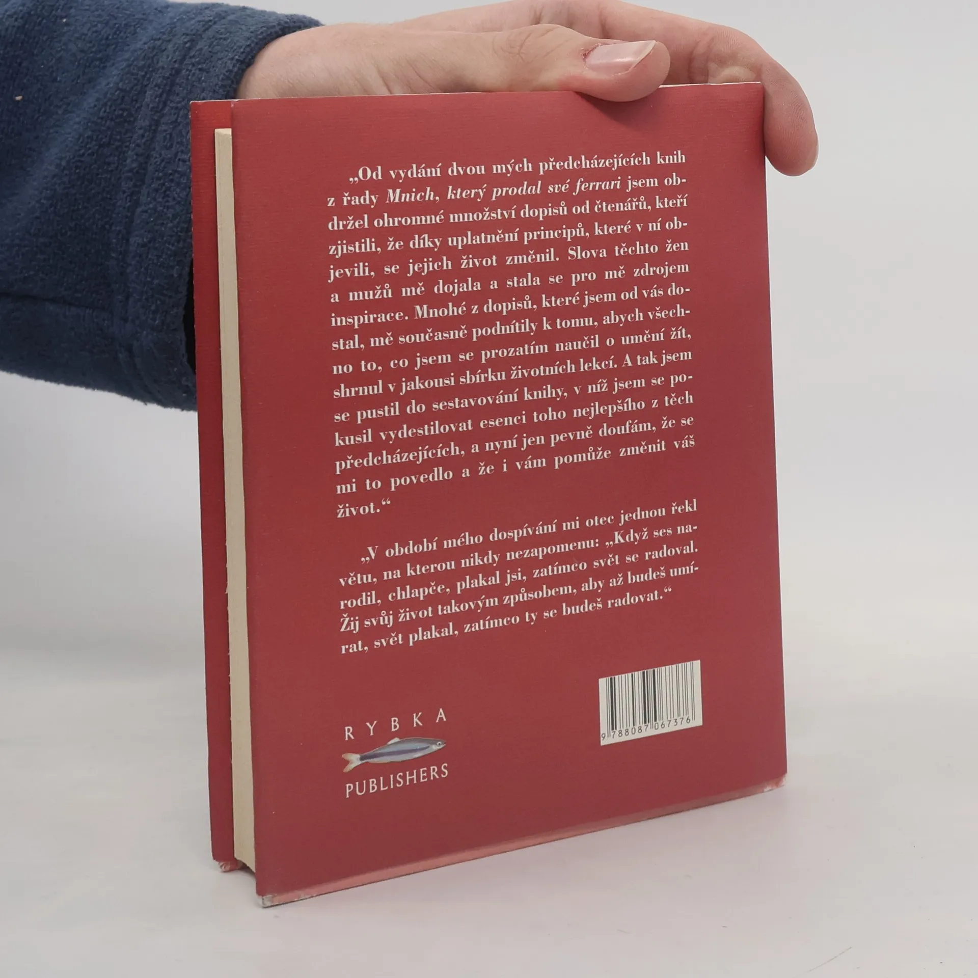 Žijete plným a smysluplým životem? Využíváte zcela svých možností, svého vnitřního potenciá­lu? Máte jasno v tom, co byste chtěli v životě dokázat? Umíte odpouštět? Žijete tak, abys­te mohli umřít štastní? Co po sobě zanecháte, až se odeberete na věčnost? A komu budete chybět – kdo bude plakat, až tady ne­­budete? Robin Sharma, autor světového bestselleru Mnich, který prodal své ferrari, shrnul svou životní moudrost a filozofii, jakož i praktické postřehy a poznatky do stovky životních lekcí, v nichž ve zhuštěné podobě formuluje principy, které by si měl osvojit každý, kdo se rozhodl vzít život do vlastních rukou a učinit jej smysluplným. Záběr otázek a rad, které autor ve svém malém životním rádci předestírá, je široký – od zdánlivě prostých doporučení (Naučte se žádat o to, co chcete; Soustřed’te se na to podstatné; Prožijte den bez hodinek; Res­pek­tujte své instinkty; Vytvořte si osobní kodex chování; Naučte se mlčet) přes hluboké výzvy k zamyšlení (Objevte své poslání; Neodkládejte život na neurčito; Důležitá je cesta, nejen cíl; Žijte tak, abyste mohli umřít š astní) až po lek­ce zcela nevšední a originální