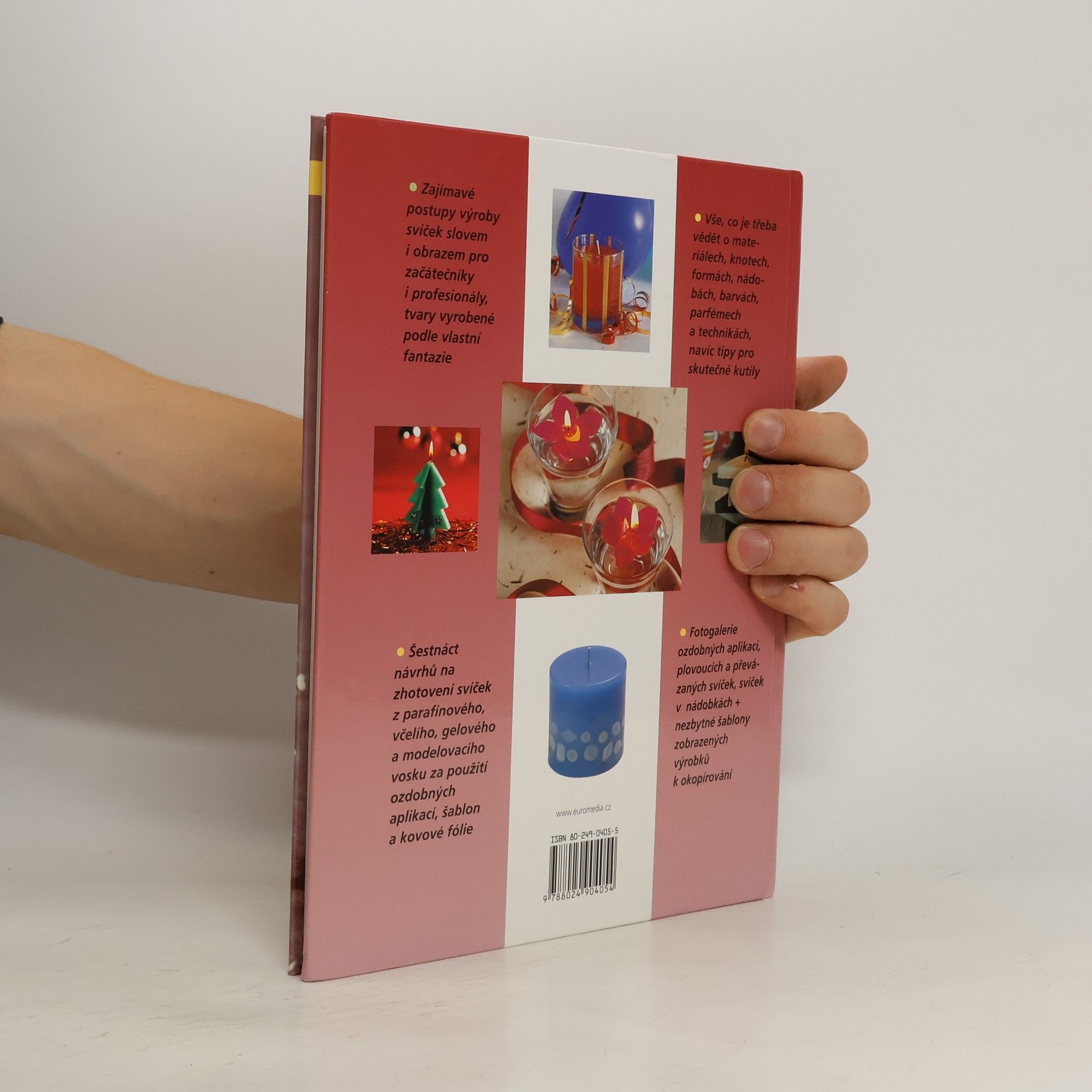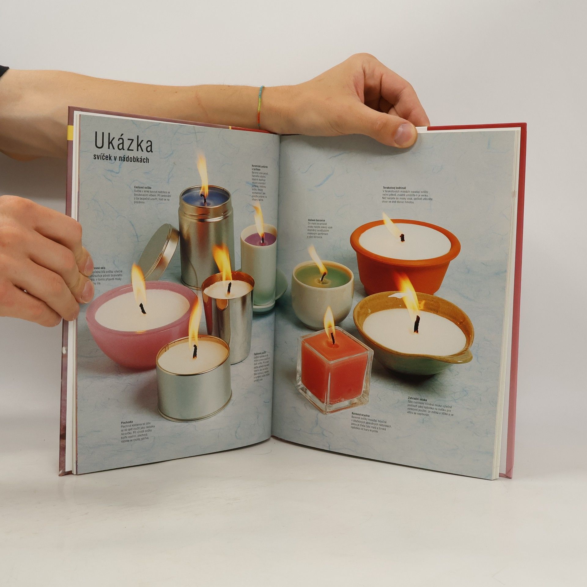Fotogalerie svíček v nádobkách, ozdobných aplikací, plovoucích a převázaných svíček + nezbytné šablony zobrazených výrobků k okopírování.