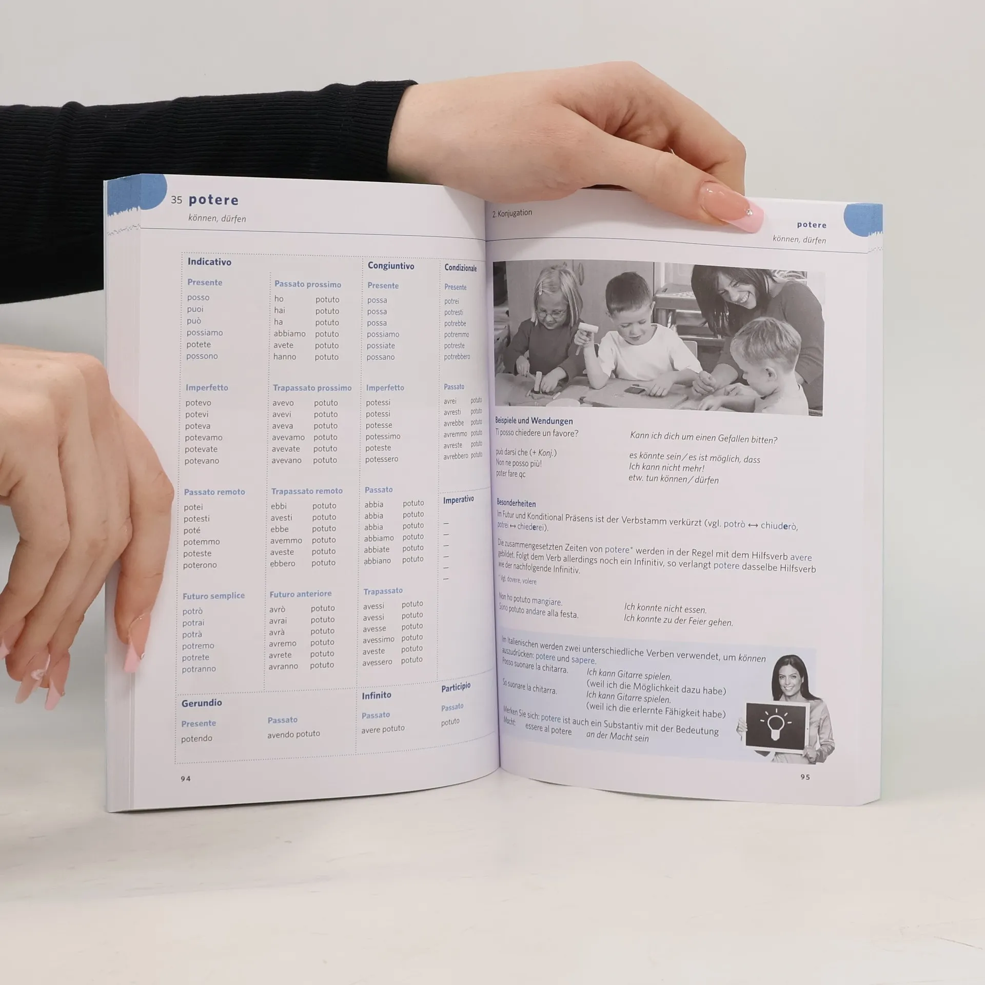 „Alle Verbformen schnell nachschlagen und sofort richtig anwenden - Doppelseitenprinzip: Links finden Sie die übersichtlichen Konjugationstabellen mit der Übersetzung der Verben ins Deutsche, rechts nützliche Wendungen, Beispiele und Tipps. - Laura, Ihre persönliche Italienischlehrerin gibt Ihnen wichtige Tipps, motiviert, warnt vor Stolperfallen und verweist auf Online-Videos, sodass Sie die Verbformen effektiv lernen. - Mit Grammatikteil und Übersetzung aller Verben ins Deutsche. - Neu: Wiederholen Sie das Gelernte mit zahlreichen Online-Übungen! Alles, was man braucht, um schwierige Verben nicht nur richtig zu konjugieren sondern auch erfolgreich im Zusammenhang anzuwenden.“