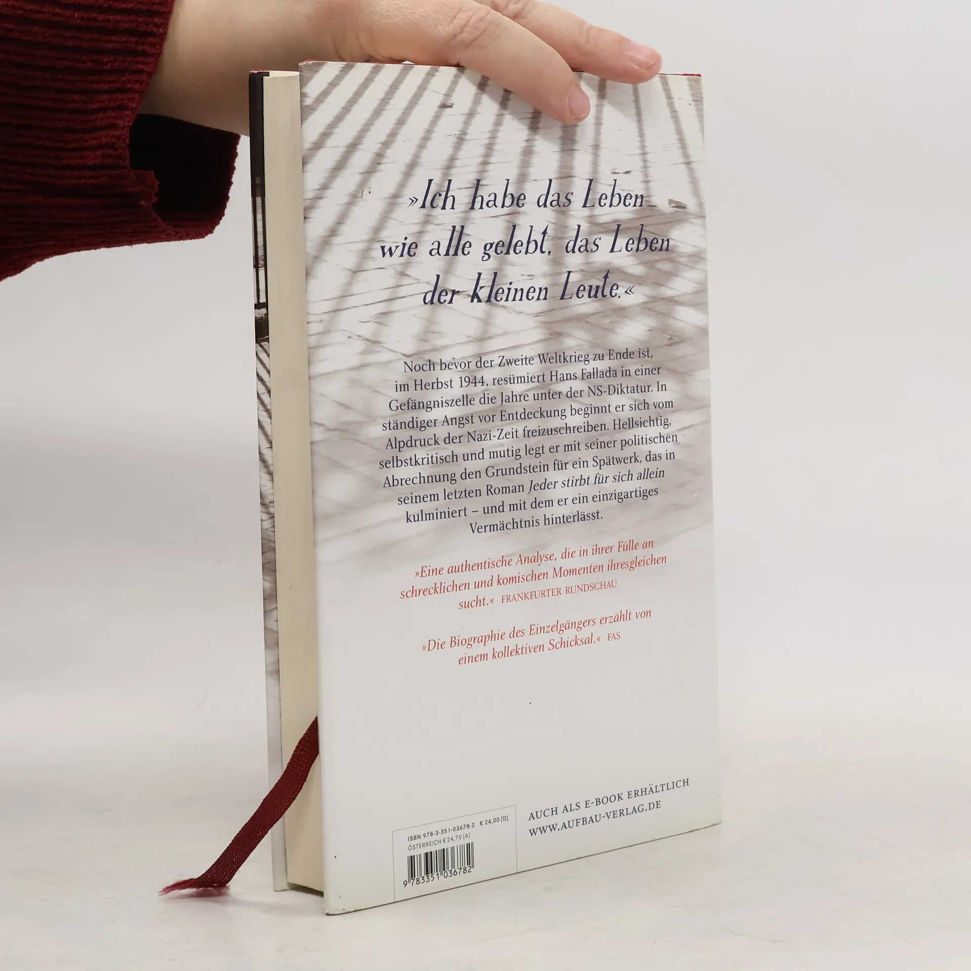 »Ich habe das Leben wie alle gelebt, das Leben der kleinen Leute.« Im Herbst 1944, kurz vor dem Ende des Zweiten Weltkriegs, reflektiert Hans Fallada in seiner Gefängniszelle über die Jahre unter der NS-Diktatur. Getrieben von der ständigen Angst vor Entdeckung, beginnt er, sich von den Schrecken der Nazi-Zeit zu befreien. Mit bemerkenswerter Klarheit und Mut verfasst er eine politische Abrechnung, die den Grundstein für sein Spätwerk legt, das in seinem letzten Roman kulminiert und ein einzigartiges Vermächtnis hinterlässt. Am 4. September 1944 wird Fallada aus dem Gefängnis entlassen, erschöpft, alkoholabhängig und körperlich sowie seelisch am Ende. Trotz seiner desolaten Verfassung beginnt er, seine Erinnerungen an die Nazi-Zeit niederzuschreiben. Er thematisiert das Spitzelwesen, die Bedrohung seiner kreativen Freiheit und das Schicksal seiner Freunde wie Ernst Rowohlt und Emil Jannings. Um sich zu schützen und Papier zu sparen, nutzt er Kürzel und entwickelt eine Art „Geheimschrift“. Schließlich gelingt es ihm, das brisante Manuskript aus dem Gefängnis zu schmuggeln.