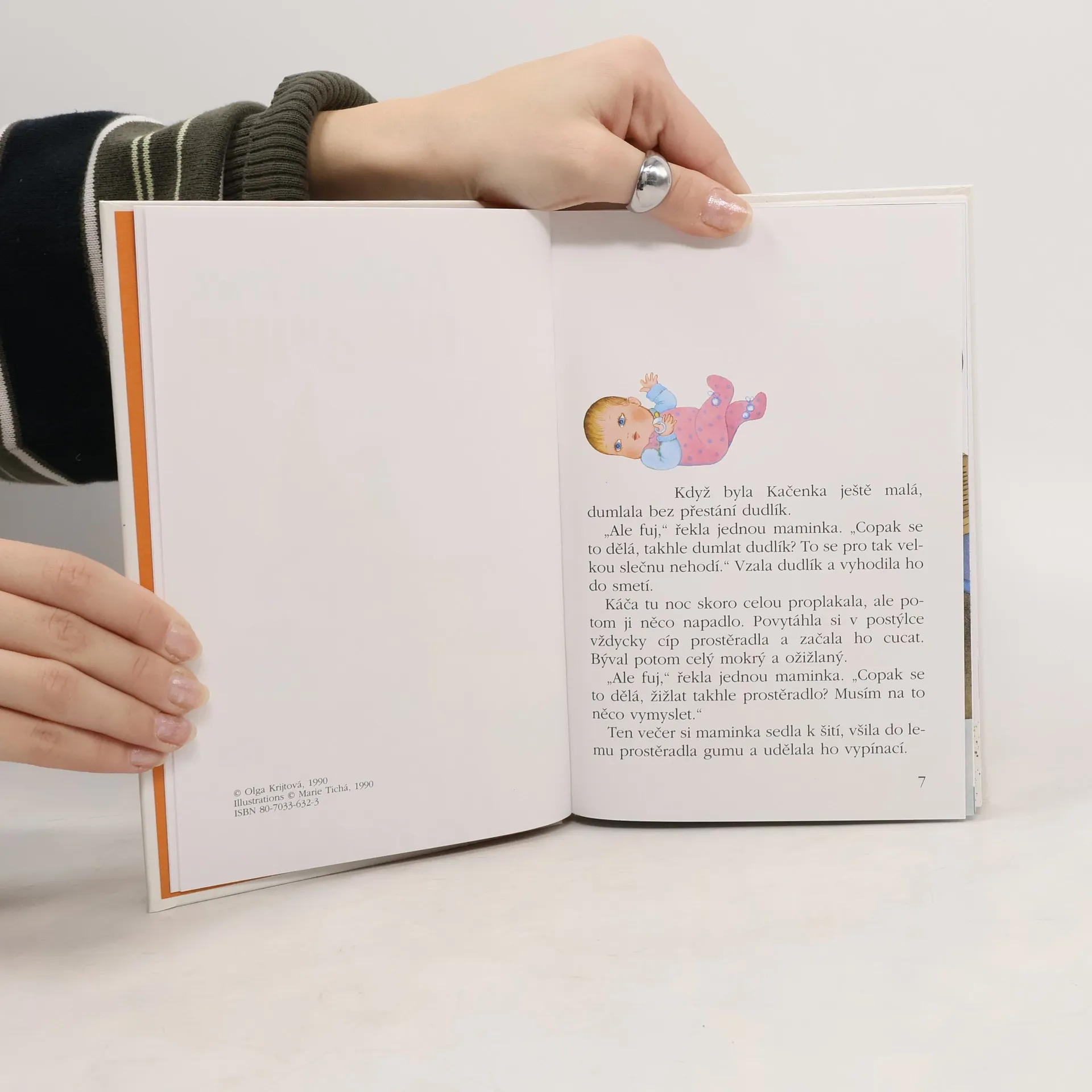 Knížka pro začínající čtenáře vypráví o malé Kačence, která našla na ulici ztracenou špinavou rukavici. Maminka ji vyprala a vykouzlila z ní báječné překvapení... které si děti s pomocí dospělého mohou doma snadno také vyrobit.