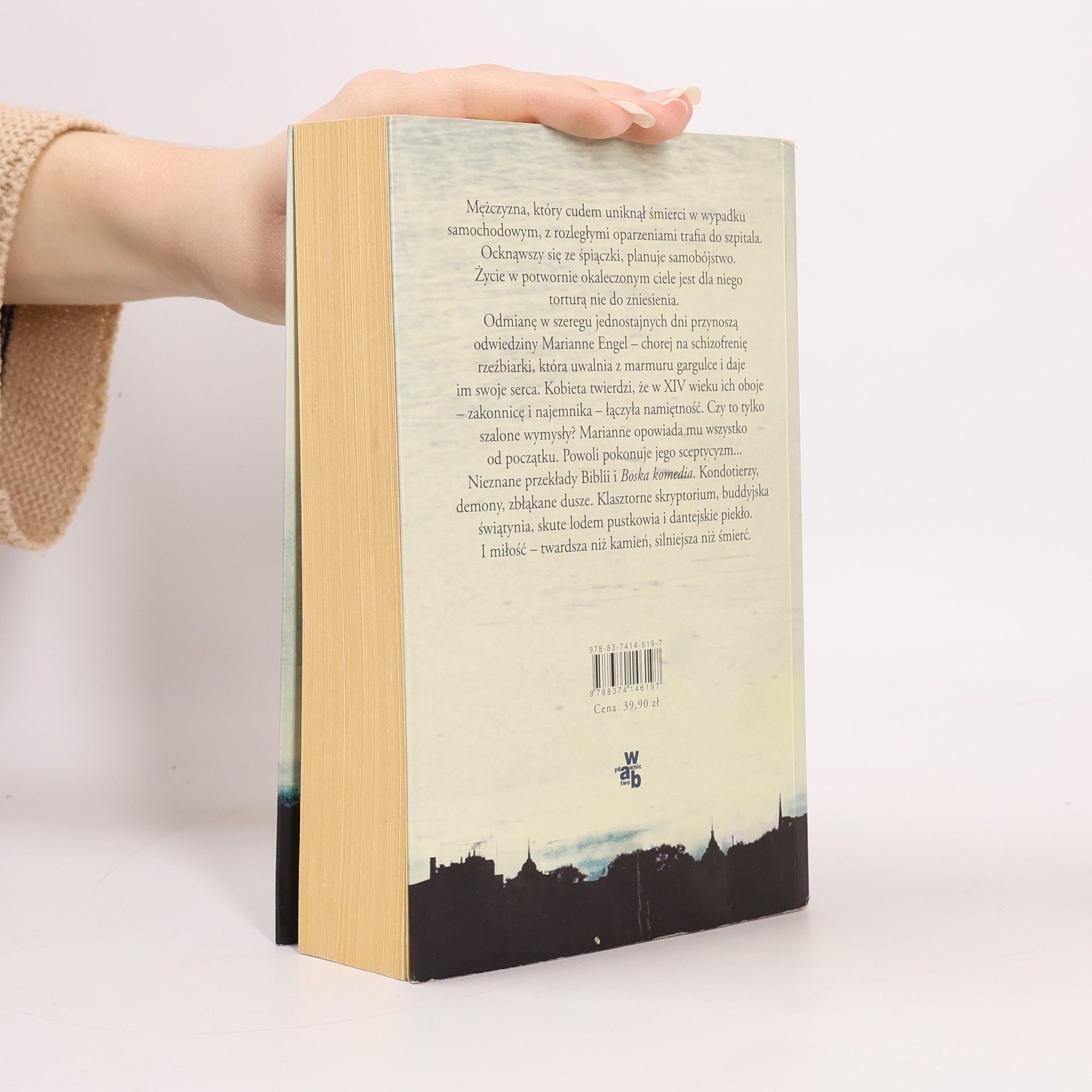Zanim napisał Gargulca, Andrew Davidson przez siedem lat zbierał materiały. Praca przyniosła oszałamiający efekt. Powieść jeszcze przed premierą zyskała olbrzymi rozgłos i przyciągnęła uwagę mediów i wydawców z całego świata. Dwadzieścia pięć redakcji z całego świata równolegle pracowało nad przekładem. Na oddziale poparzeń leży mężczyzna. Zawieszony między życiem a śmiercią. Ulgę znajduje jedynie w szczegółowym planowaniu samobójstwa. Aż do momentu, gdy przy jego łóżku pojawia się Marianne Engel, chora na schizofrenię rzeźbiarka tworząca figury maszkaronów. Marianne twierdzi, że od siedmiuset lat łączy ich namiętna miłość. Że poznali się w XIV wieku, gdy opatrywała jego rany jako mniszka, kopistka z niemieckiego klasztoru. Zapomniał? Nie chce uwierzyć? Nie szkodzi. Ona udowodni mu, że tak było. Zaczyna opowieść... O zaginionych przekładach Biblii i Boskiej Komedii. O średniowiecznych kondotierach, buddyjskich świątyniach, wyprawach wikingów. A nade wszystko - o miłości. Twardej jak piekło, silniejszej niż śmierć.