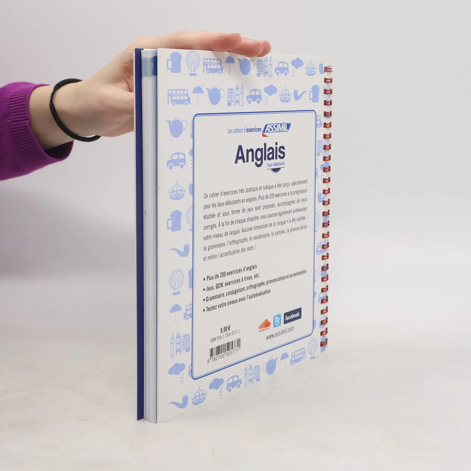 Ce cahier d'exercices très pratique et ludique a été conçu spécialement pour les faux - débutants en anglais. Plus de 200 exercices à la progression étudiée et sous forme de jeux sont proposés, accompagnés de leurs corrigés. A la fin de chaque chapitre, vous pourrez également autoévaluer votre niveau de langue. Aucune dimension de la langue n'a été oubliée la grammaire, l'orthographe, le vocabulaire, la syntaxe, la prononciation et même l'accentuation des mots ! Plus de 200 exercices d'anglais. Jeux, QCM, exercices à trous, etc. Grammaire, conjugaison, orthographe, prononciation et accentuation. Testez votre niveau avec l'autoévaluation
