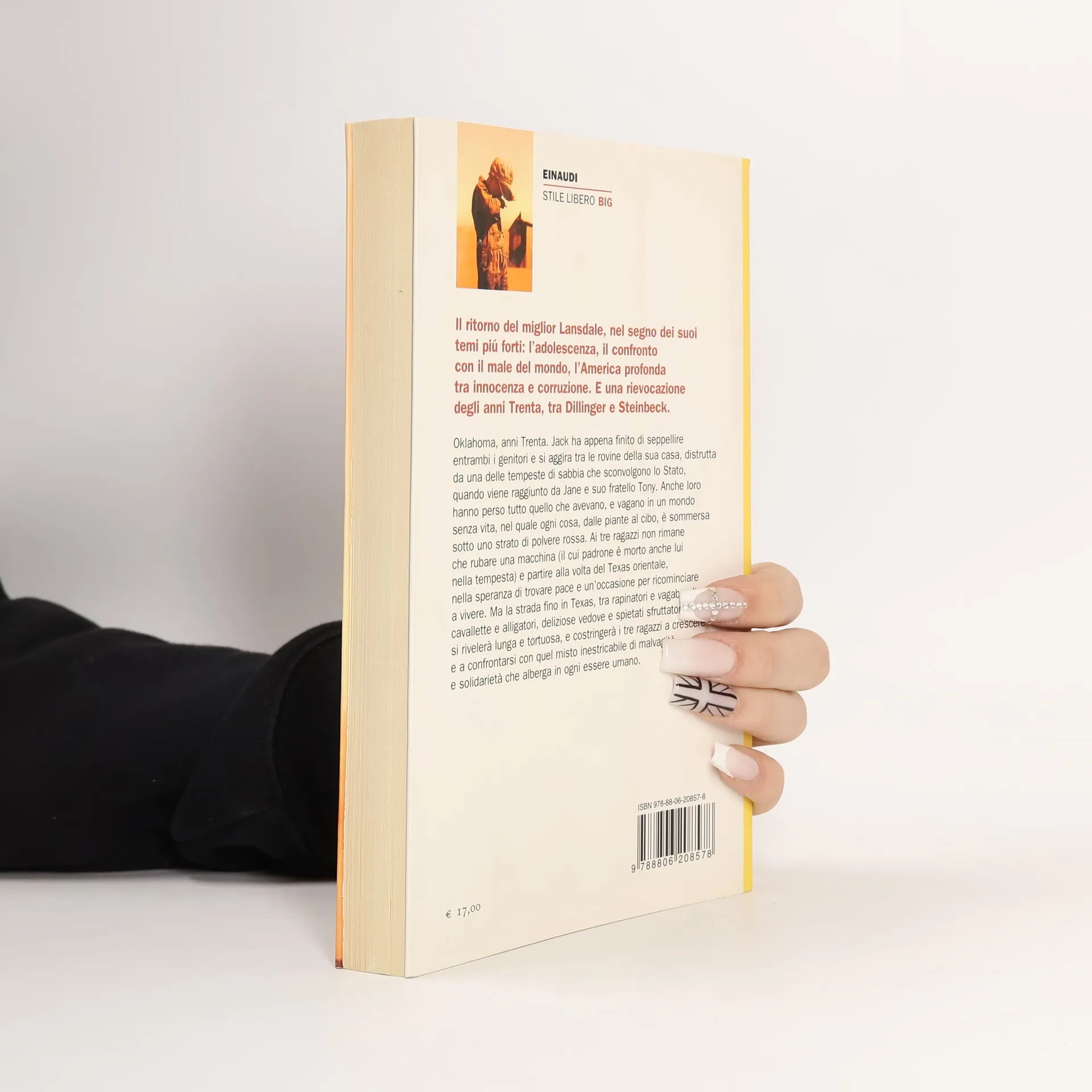 Un ritratto caldo e affettuoso dell’adolescenza, con i suoi problemi e le sue infinite risorse. Uno stile diretto ed efficace. Un umorismo a tratti irresistibile. Una serie di omaggi divertiti e divertenti all’America degli anni Trenta, tra banditismo alla Dillinger e lotte sociali: molto più semplicemente, Joe Lansdale al meglio di sé. Oklahoma, anni Trenta. Jack ha appena finito di seppellire entrambi i genitori e si aggira tra le rovine della sua casa, distrutta da una delle tempeste di sabbia che sconvolgono lo Stato, quando vede arrivare Jane e suo fratello Tony. Anche loro hanno perso tutto quello che avevano, e vagano in un mondo senza vita, nel quale tutto, dalle piante al cibo, è sommerso sotto uno strato di polvere rossa. Ai tre ragazzi non rimane che rubare una macchina (il cui padrone è morto anche lui nella tempesta) e partire alla volta del Texas orientale, nella speranza di trovare pace e un’occasione per ricominciare a vivere. Ma la strada fino in Texas, tra rapinatori e vagabondi, cavallette e alligatori, deliziose vedove e spietati sfruttatori, si rivelerà lunga e tortuosa, e costringerà i tre ragazzi a crescere e a confrontarsi con quel misto inestricabile di malvagità e solidarietà che alberga in ogni essere umano.