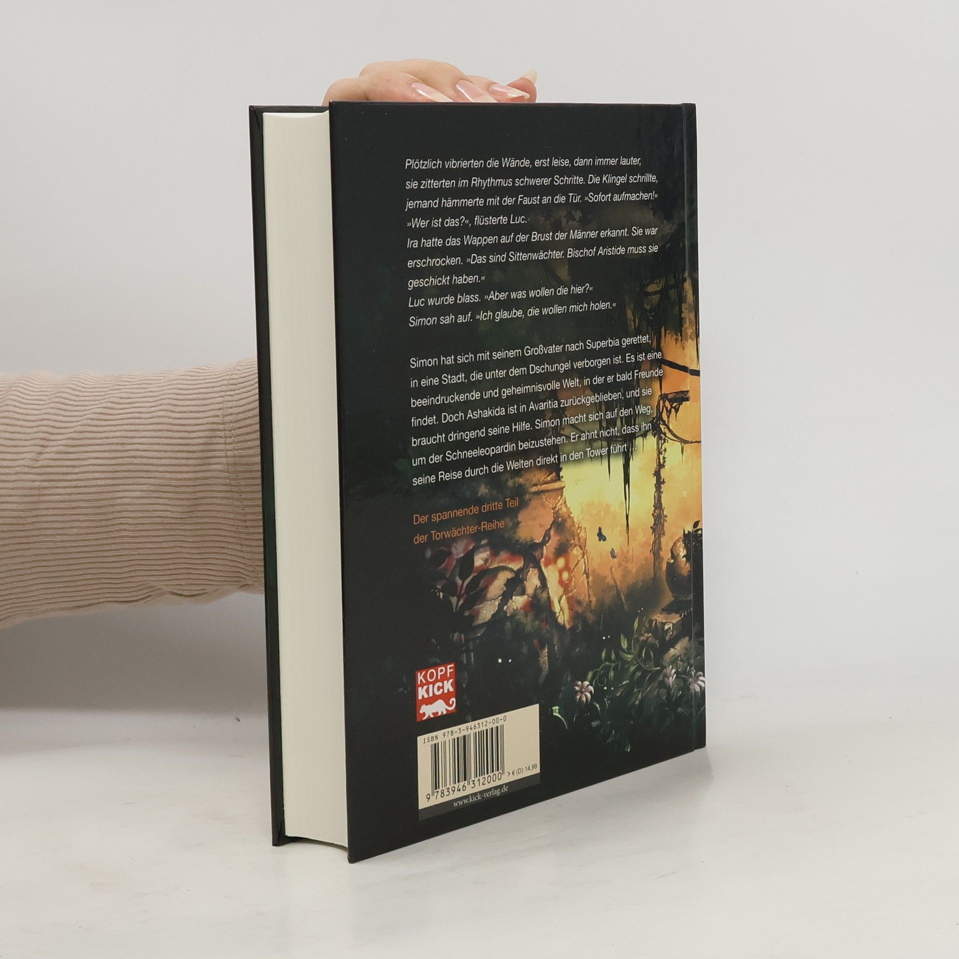 Simon flieht mit seinem Großvater nach Superbia, einer geheimnisvollen Stadt im Dschungel. Dort findet er Freunde, doch Ashakida, die Schneeleopardin, benötigt dringend seine Hilfe. Seine Reise führt ihn unerwartet in den Tower. "Der Torwächter - Der verbotene Turm" ist der dritte Teil der Torwächter-Reihe.