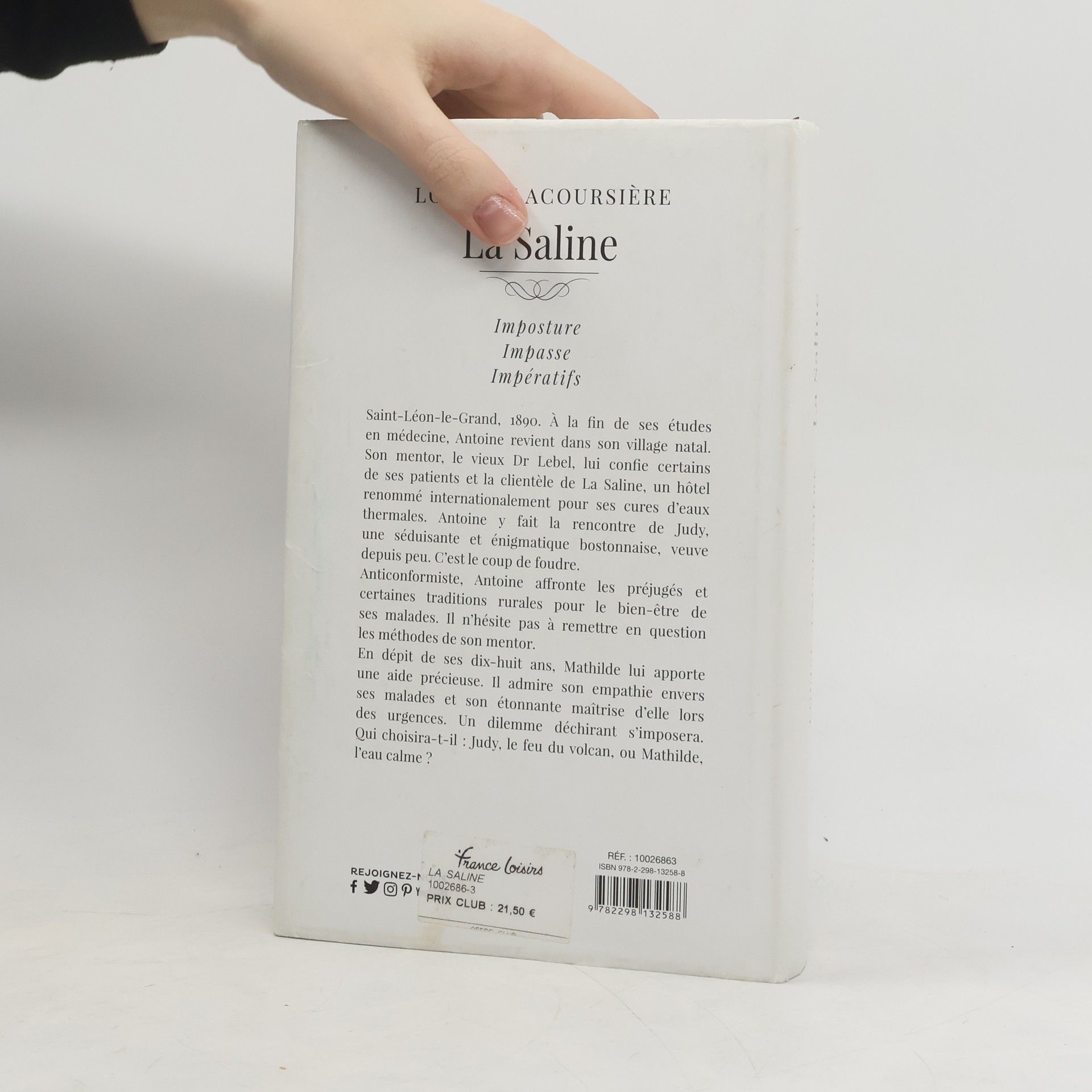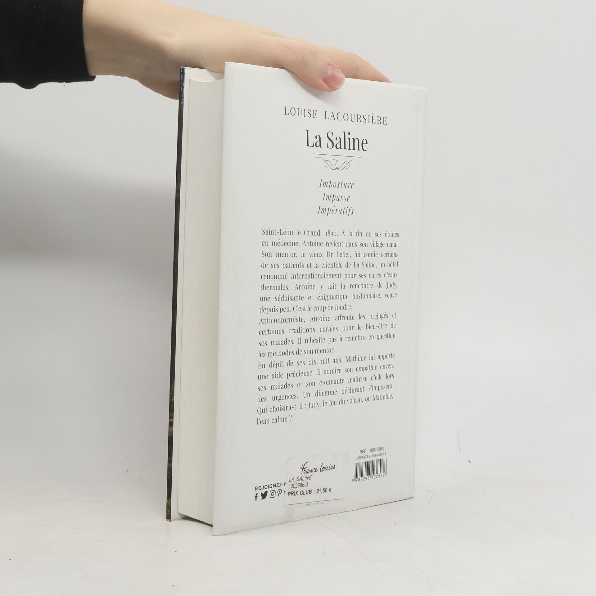 Saint-Léon-le-Grand, 1890. À la fin de ses études en médecine, Antoine revient dans son village natal. Son mentor, le vieux Dr Lebel, lui confie certains de ses patients et la clientèle de La Saline, un hôtel renommé internationalement pour ses cures d’eaux thermales. Antoine y fait la rencontre de Judy, une séduisante et énigmatique bostonnaise, veuve depuis peu. C’est le coup de foudre.Anticonformiste, Antoine affronte les préjugés et certaines traditions rurales pour le bien-être de ses malades. Il n’hésite pas à remettre en question les méthodes de son mentor.En dépit de ses dix-huit ans, Mathilde lui apporte une aide précieuse. Il admire son empathie envers ses malades et son étonnante maîtrise d’elle lors des urgences. Un dilemme déchirant s’imposera. Qui choisira-t-il : Judy, le feu du volcan, ou Mathilde, l’eau calme ?