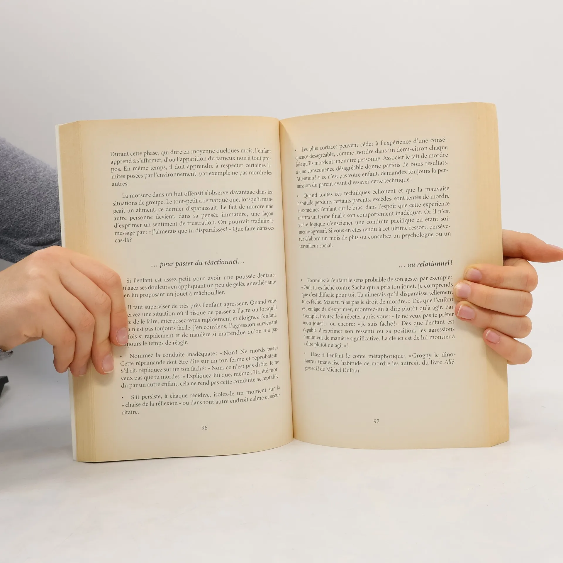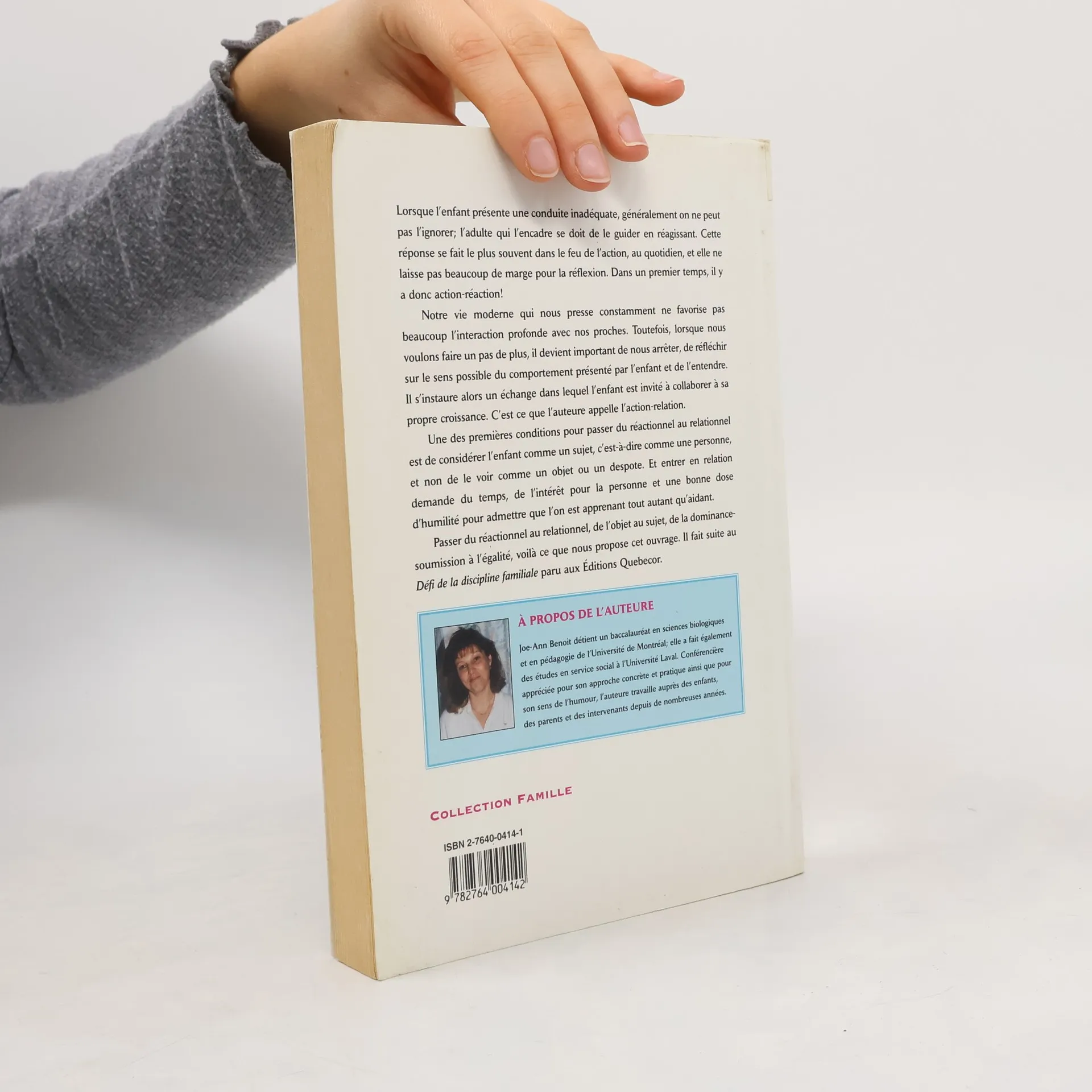 Lorsque l'enfant présente une conduite inadéquate, généralement on ne peut pas l'ignorer ; l'adulte qui l'encadre se doit de le guider en réagissant Cette réponse se fait le plus souvent dans le feu de l'action, au quotidien, et eue ne laisse pas beaucoup de marge pour la réflexion. Dans un premier temps, il y a donc action réaction ! Notre vie moderne qui nous presse constamment ne favorise pas beaucoup l'interaction profonde avec nos proches. Toutefois, lorsque nous voulons faire un pas de plus, il devient important de nous arrêter, de réfléchir sur le sens possible du comportement présenté par l'enfant et de l'entendre. Il s'instaure alors un échange dans lequel l'enfant est invité à collaborer à sa propre croissance. C'est ce que l'auteure appelle l'action-relation. Une des premières conditions pour passer du réactionnel au relationnel est de considérer l'enfant comme un sujet, c'est-à-dire comme une personne, et non de le voir comme un objet ou un despote. Et entrer en relation demande du temps, de l'intérêt pour la personne et une bonne dose d'humilité pour admettre que l'on est apprenant tout autant qu'aidant. Passer du réactionnel au relationnel, de l'objet au sujet, de la dominance soumission à l'égalité, voilà ce que nous propose cet ouvrage. Il fait suite au Défi de la discipline famille de paru aux éditions Quebecor.