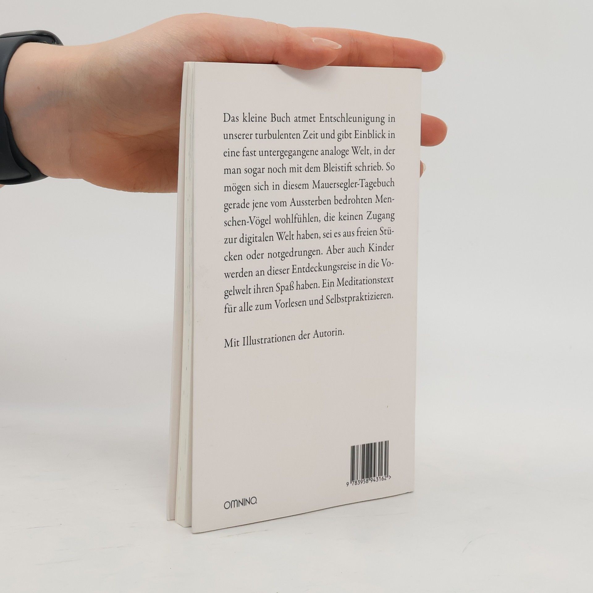 Das kleine Buch atmet Entschleunigung in unserer turbulenten Zeit und gibt Einblick in eine fast untergegangene analoge Welt, in der man sogar noch mit dem Bleistift schrieb. So mögen sich in diesem Mauersegler-Tagebuch gerade jene vom Aussterben bedrohten Menschen-Vögel wohlfühlen, die keinen Zugang zur digitalen Welt haben, sei es aus freien Stücken oder notgedrungen. Aber auch Kinder werden an dieser Entdeckungsreise in die Vogelwelt ihren Spaß haben. Ein Meditationstext für alle zum Vorlesen und Selbstpraktizieren. Mit Illustrationen der Autorin.