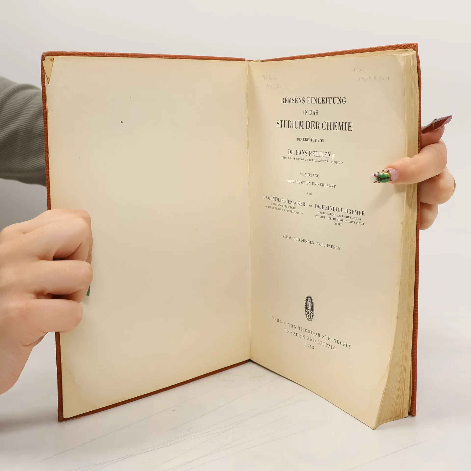 Einleitung in das Studium der Chemie, Hans Reihlen
