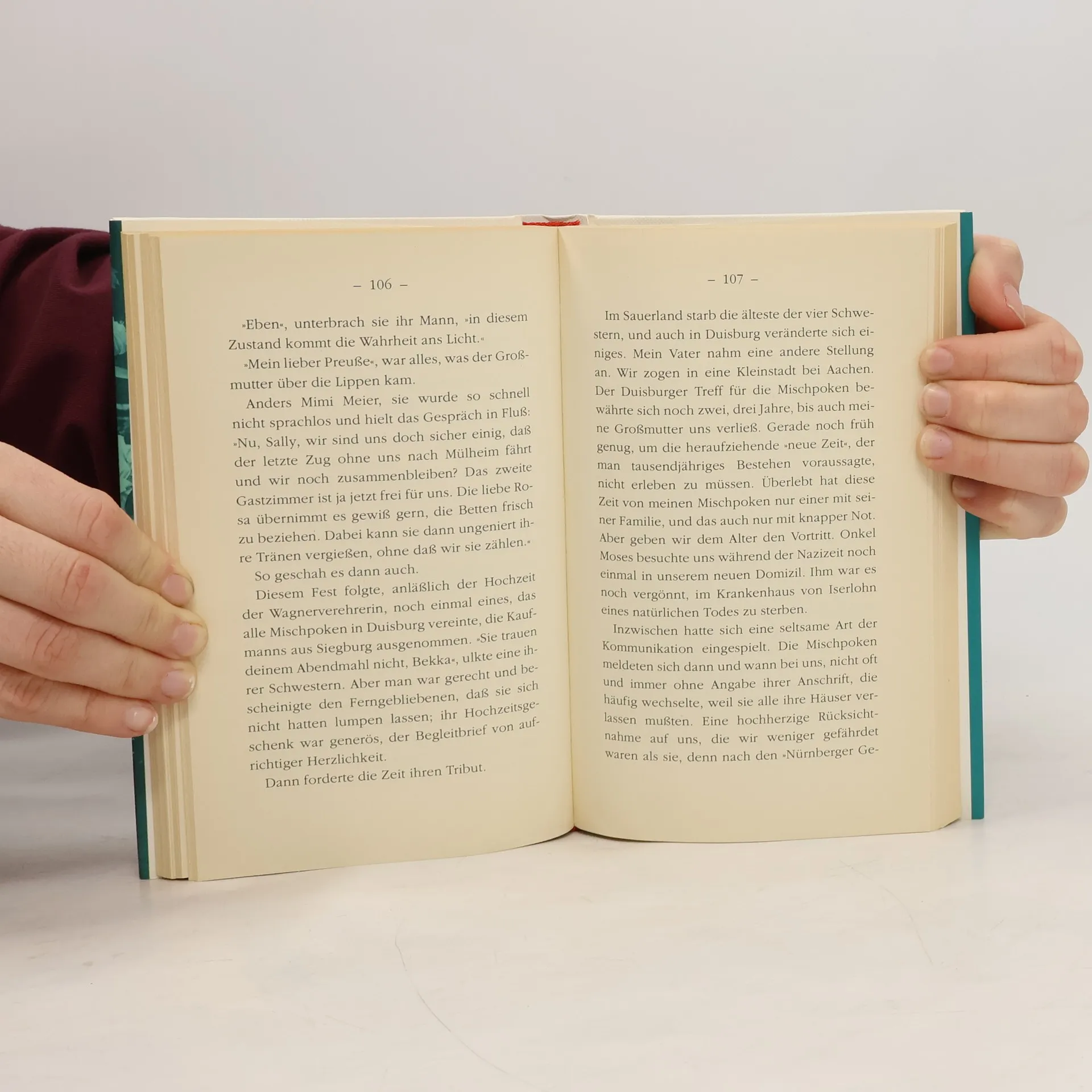 Die Geschichte einer Grossfamilie, die die Nachbarn der Autorin (Jg. 1921) in Duisburg vor der Etablierung des NS-Regimes waren, und mit denen diese ihre Kindheit erlebt hat.