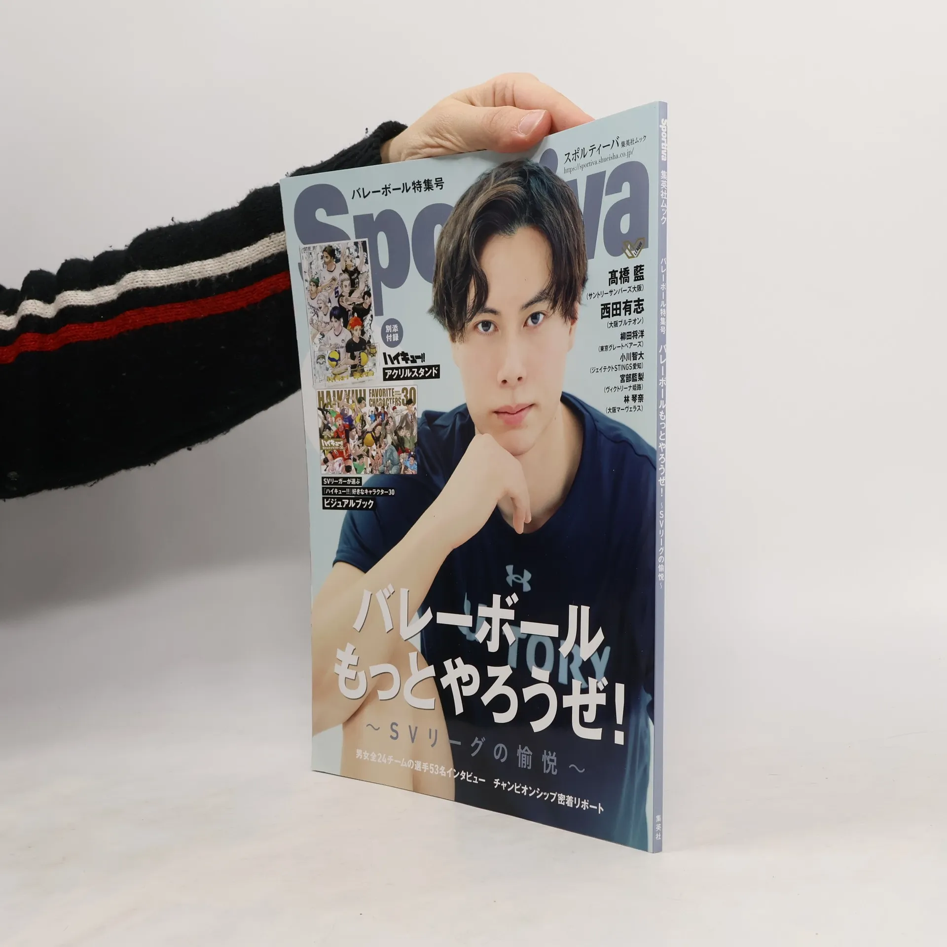 パリオリンピック後も注目度が上がり続けるバレーボール。装いも新たに開幕したSVリーグの初年度を総括すべく、髙橋藍(サントリーサンバーズ大阪)ほか人気SVリーガーたちにインタビュー取材。 表紙は髙橋藍! SVリーグの顔ともいえる髙橋選手の撮りおろしとインタビュー、最新プレー写真のほか、初代王者を決める熾烈な「SVリーグチャンピオンシップ」の密着リポート、コラボ企画「ハイキュー!!×SVリーグ」の選手インタビューも多数収録。 特典付録は大人気バレーボール漫画『ハイキュー!!』のアクリルスタンド(A5判サイズ)! 別冊付録は「SVリーガーに聞いた『ハイキュー!!』の好きなキャラクター」ビジュアルブック(A4:29.7 x 23.2 ・32P)。SVリーグの男女50人以上の選手たちが、それぞれの好きなキャラクターと、その理由や思い入れを選手ならではの視点で熱く語ってくれました。 『ハイキュー!!』の作者、古舘春一先生によるスペシャル描きおろしイラストも掲載予定。 ※内容は変更になる可能性もございます。 『ハイキュー!!』を通してSVリーガーたちの素顔に深く迫った1冊、お見逃しなく!