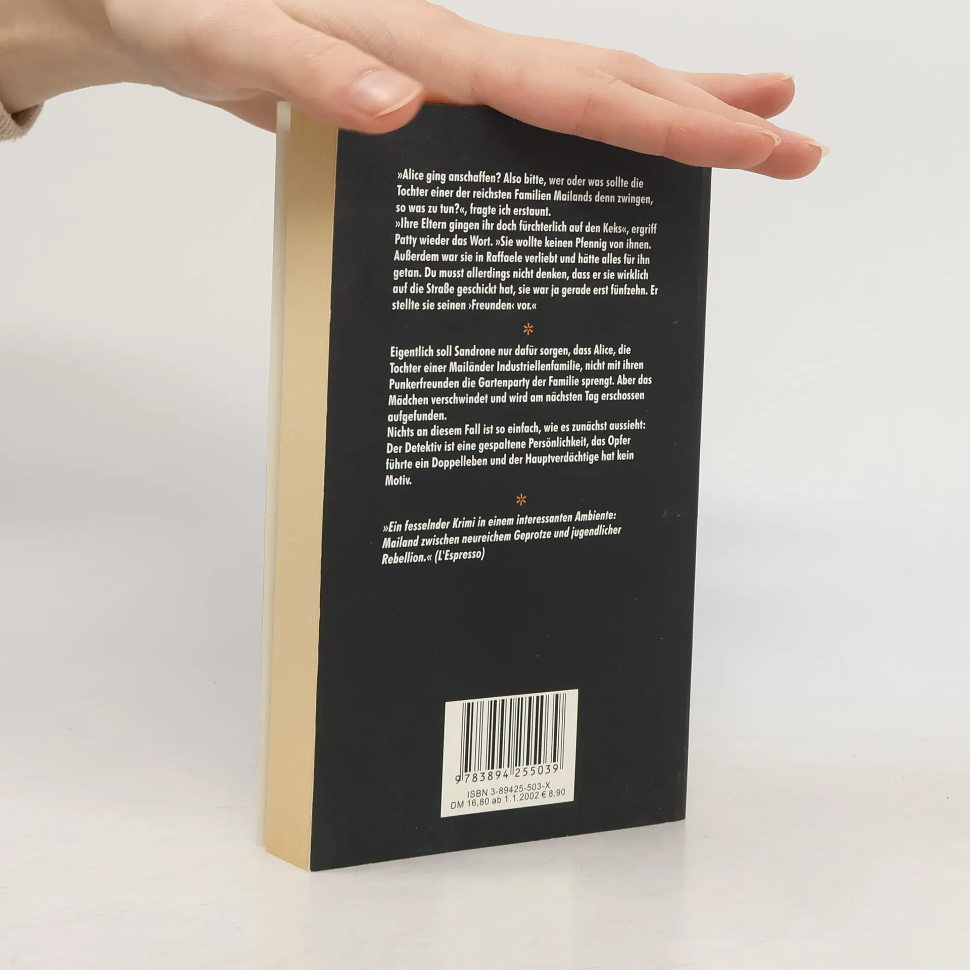 Eigentlich sollte Sandrone nur dafür sorgen, dass die Tochter einer angesehenen Mailänder Industriellenfamilie nicht mit ihren Punkerfreunden die elterliche Gartenparty sprengt. Als das Mädchen am nächsten Tag tot aufgefunden wird, ermittelt Sandrone auf eigene Faust.