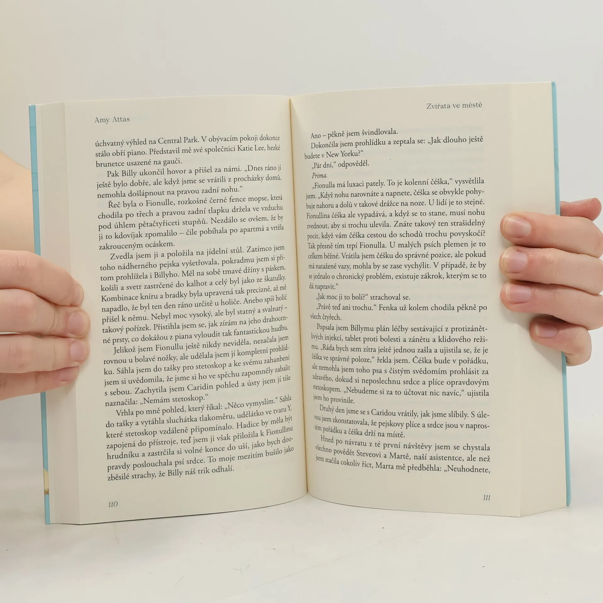 Když mají nemocného mazlíčka, jsou lidé – dokonce i ti bohatí a slavní – nejupřímnější a nejzranitelnější. Můžou mít na stěně Moneta a na poličce Oscara, ale jakmile jejich kočka dostane rýmu, chtějí mluvit jen o smrkání a kýchání. A tehdy zavolají přední newyorskou veterinářku Amy Attas. Sbírka povídek Zvířata ve městě čítá všechny zábavné i srdcervoucí zážitky, se kterými se doktorka Amy setkala během své třicetileté kariéry, kdy ošetřovala kočky a psy napříč Manhattanem. Ať už se příběhy týkají spíše majitelů, nebo jejich pozoruhodných zvířat, plyne z nich jedna klíčová pravda: naši domácí mazlíčci z nás dělají lepší lidi.