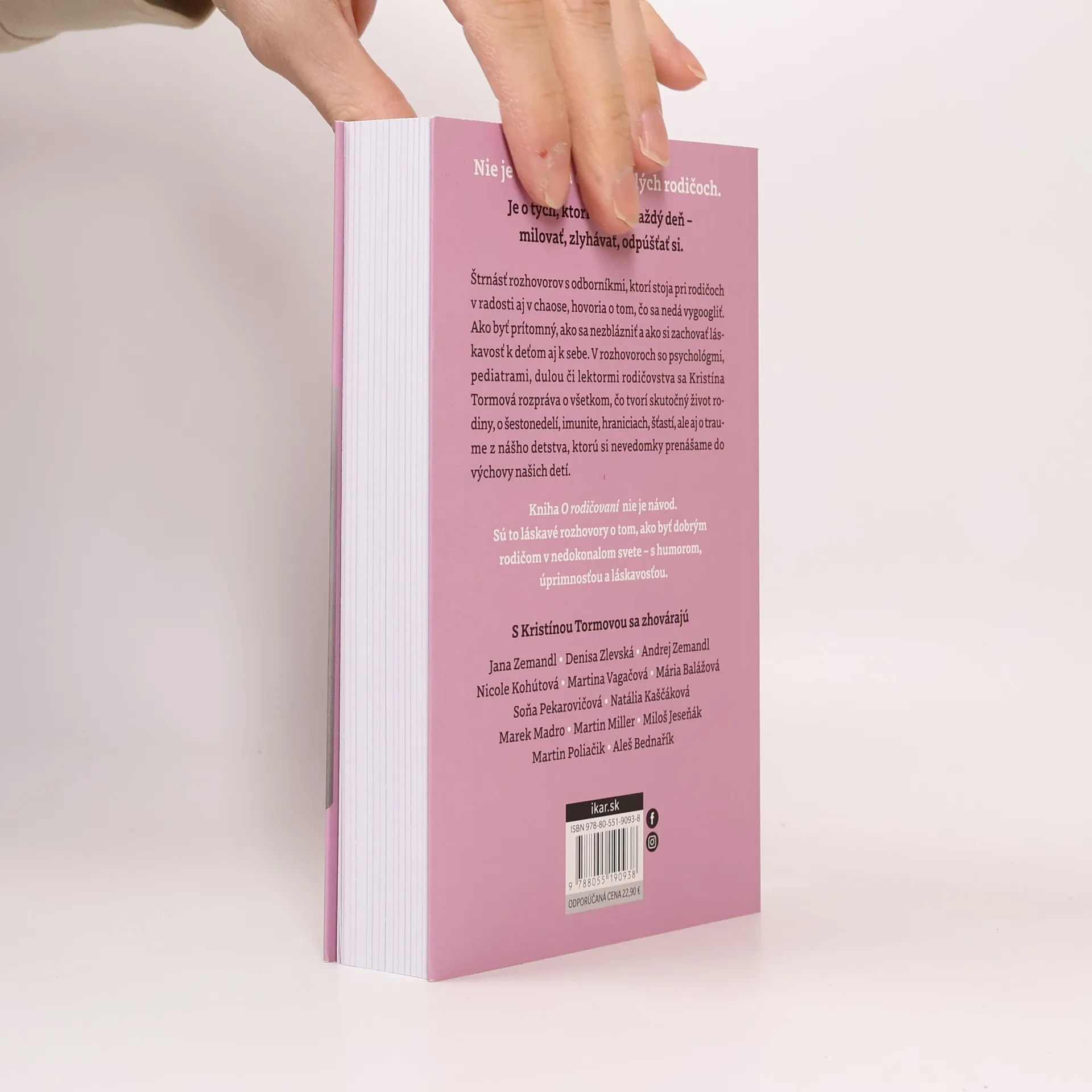 Nie je to kniha o dokonalých rodičoch. Je o tých, ktorí sa učia každý deň – milovať, zlyhávať, odpúšťať si. 14 rozhovorov s odborníkmi, ktorí stoja pri rodičoch v radosti aj v chaose, hovoria o tom, čo sa nedá vygoogliť. Ako byť prítomný, ako sa nezblázniť a ako si zachovať láskavosť, k deťom aj k sebe. V rozhovoroch so psychológmi, pediatrami, dulou, či lektormi rodičovstva sa Kristína Tormová rozpráva o všetkom, čo tvorí skutočný život rodiny, o šestonedelí, imunite, hraniciach, šťastí, ale aj o traume z nášho detstva, ktorú si nevedomky prenášame aj do výchovy našich detí. Známu herečku, moderátorku a aktivistku tu však nesprevádza len zvedavosť, ale najmä jej vlastná skúsenosť mamy, ktorá sa nebojí hovoriť aj o tých dňoch, keď to nejde. Pretože je to normálne. Nie, nemusíme byť perfektné mamy a otcovia, je normálne nevládať, je normálne byť smutný, je normálne nemať upratané a je normálne povedať si dosť. Kniha O rodičovaní nie je návod. Sú to láskavé rozhovory o tom, ako byť dosť dobrým rodičom v nedokonalom svete – s humorom, úprimnosťou a láskavosťou.