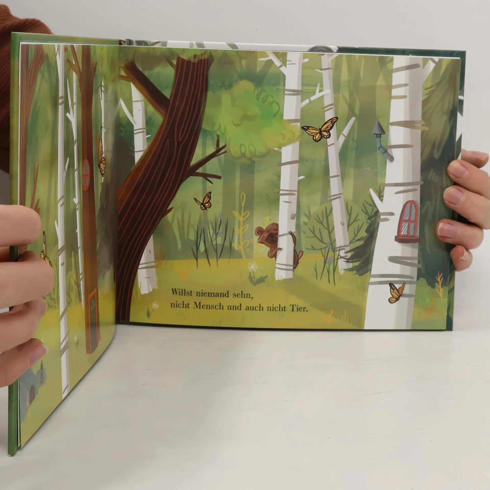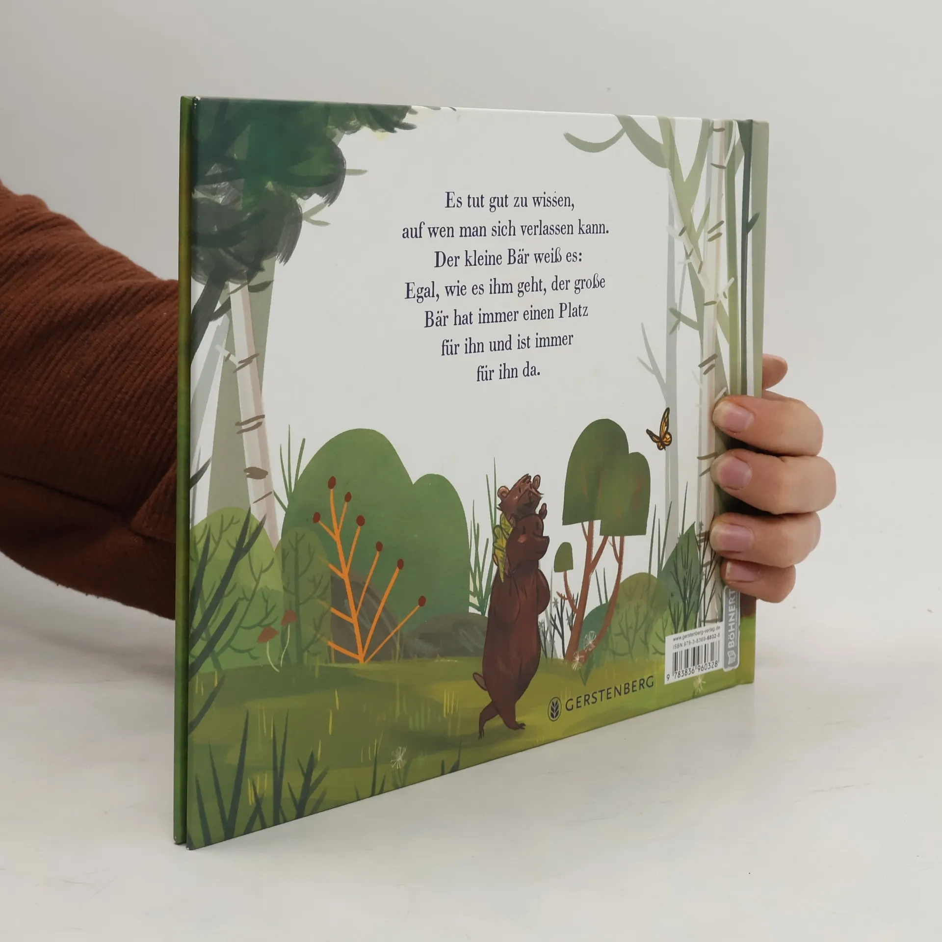 Jeder fühlt sich mal klein und verzagt. Da tut es gut zu wissen, auf wen man sich verlassen kann, wer zu einem hält und immer einen Platz und ein offenes Ohr für einen hat. Ob Sommer oder Winter, der große Bär wird stets für den kleinen Bären da sein. Er wird mit ihm spielen, ihn in eine weiche Decke kuscheln und ihm Honig geben. Bei ihm kann er getrost Winterschlaf halten und dann ausgeruht mit ihm den Frühling begrüßen und wieder über die Wiesen zum Fluss tanzen. Die Geschichte einer dicken Bärenfreundschaft im Kreislauf der Jahreszeiten. Den Text hat Benjamin Scheuer als Song vertont und gesungen, die deutschsprachige Fassung findet sich als Liedtext mit Notensatz im Buch.