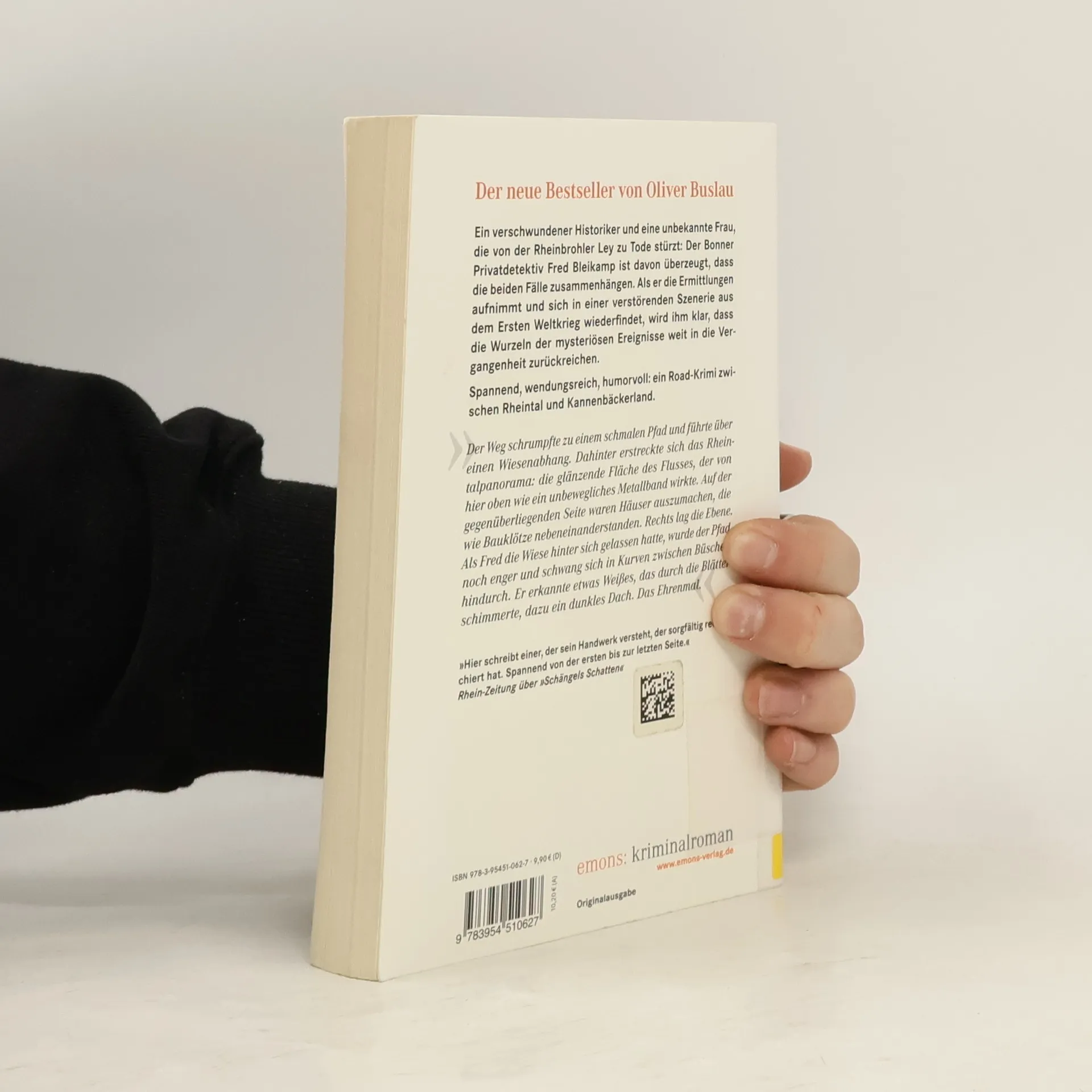 a mystery set in the Rheinland of Germany. A detective from Bonn is called in because someone is missing. While looking for him a woman is found dead on a hiking path. He thinks the two cases have something to do with each other. As he begins his case, evidence from World War I keeps coming up and having something to do with the case.