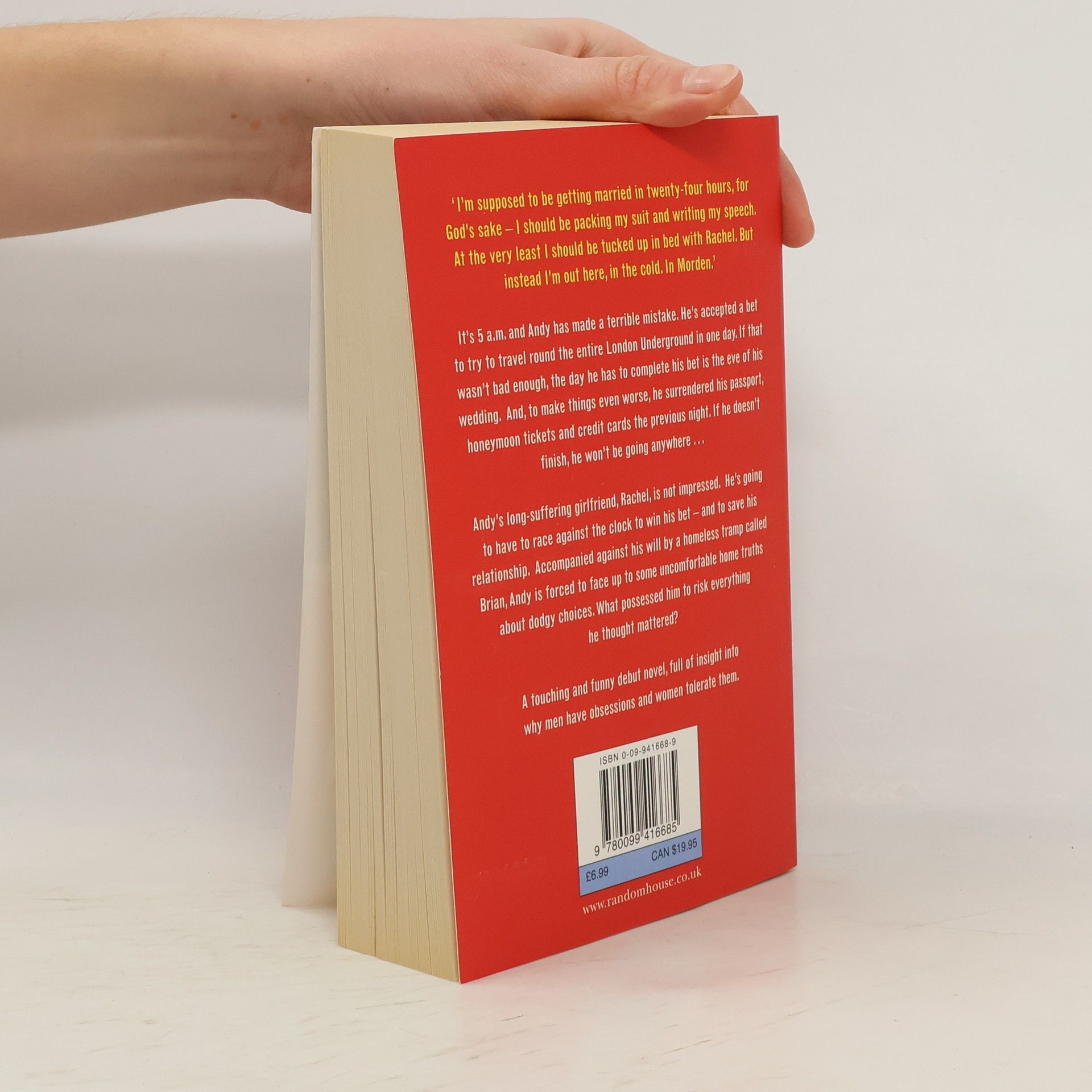 On the eve of his wedding, Andy makes a drunken bet which threatens to ruin everything. His task is to travel to every station on the London Underground in a single day. His passport, honeymoon tickets and credit cards have been hidden in various places along the way. He has just twenty hours to find them or the wedding is off. This is a touching and perceptive debut novel about why men have obsessions and why women tolerate them.