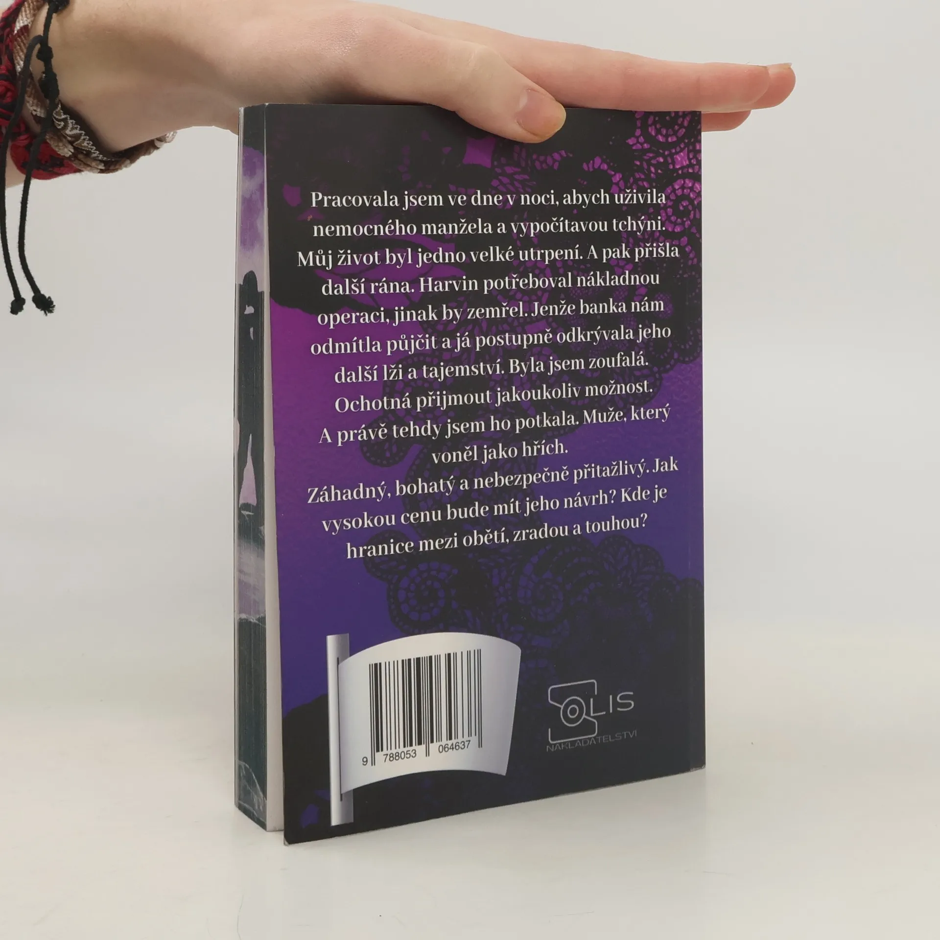 Pracovala jsem ve dne v noci, abych uživila nemocného manžela a vypočítavou tchýni. Můj život byl jedno velké utrpení. A pak přišla další rána. Harvin potřeboval nákladnou operaci, jinak by zemřel. Jenže banka nám odmítla půjčit a já postupně odkrývala jeho další lži a tajemství. Byla jsem zoufalá. Ochotná přijmout jakoukoliv možnost. A právě tehdy jsem ho potkala. Muže, který voněl jako hřích. Záhadný, bohatý a nebezpečně přitažlivý. Jak vysokou cenu bude mít jeho návrh? Kde je hranice mezi obětí, zradou a touhou?