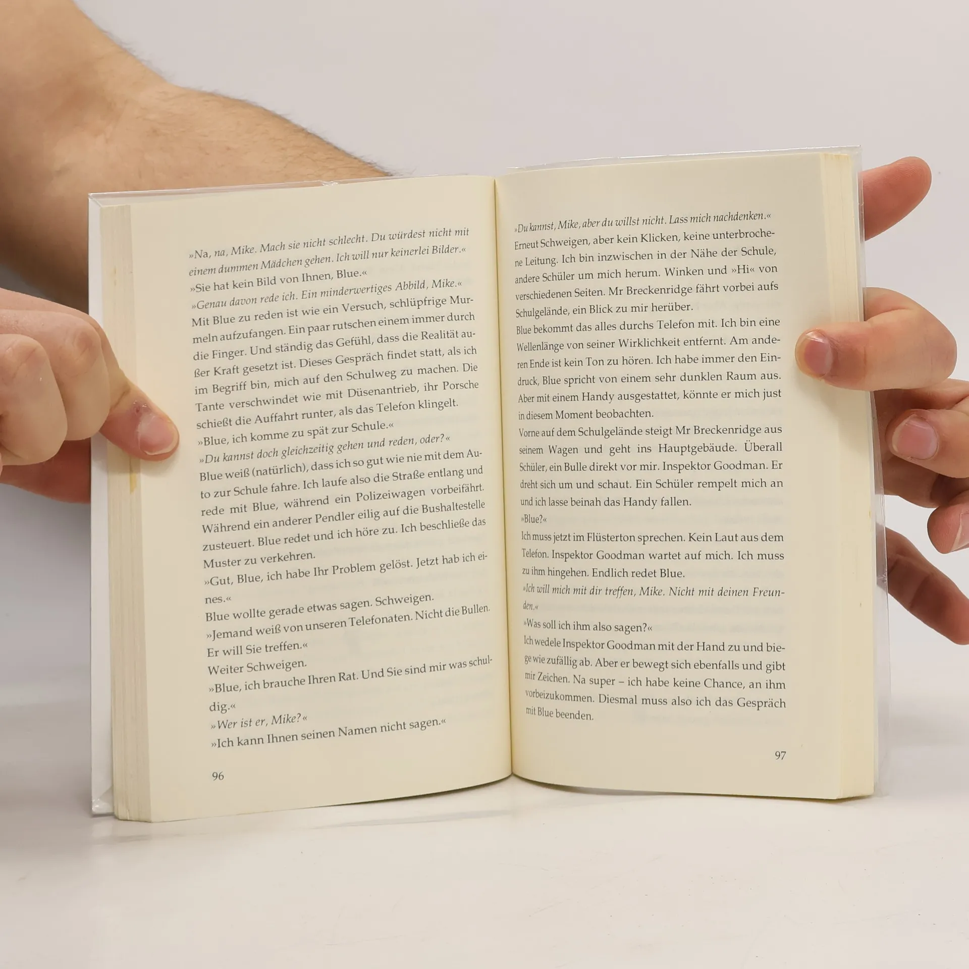 Mike Connors is a competitive and up-himself teenager who tells his story in the present tense and first person, as though talking to a tape recorder. Mike's parents died in an accident a year ago and he lives with his aunt, a business woman who doesn't have much time for him. She's given him a mobile phone so he can keep in touch when necessary. Mike's suburb is being stalked by a serial killer, and three deaths have occurred, all different - the only common feature is the means of death via a blow to the back of the head. All the victims were wearing something blue, hence the killer is known as 'Blue'. Mike happens upon the scene of Blue's latest murder and is observed by the killer. Soon a series of mobile phone calls begin, and Mike is talking regularly to Blue. It becomes clear that Blue knows a lot about Mike - secret things that no-one else can know... In this tense, tightly written thriller, it gradually becomes clear to the reader who Blue really is. But the authorities have nothing to pin the murders on - eventually they will have to let the murderer out.