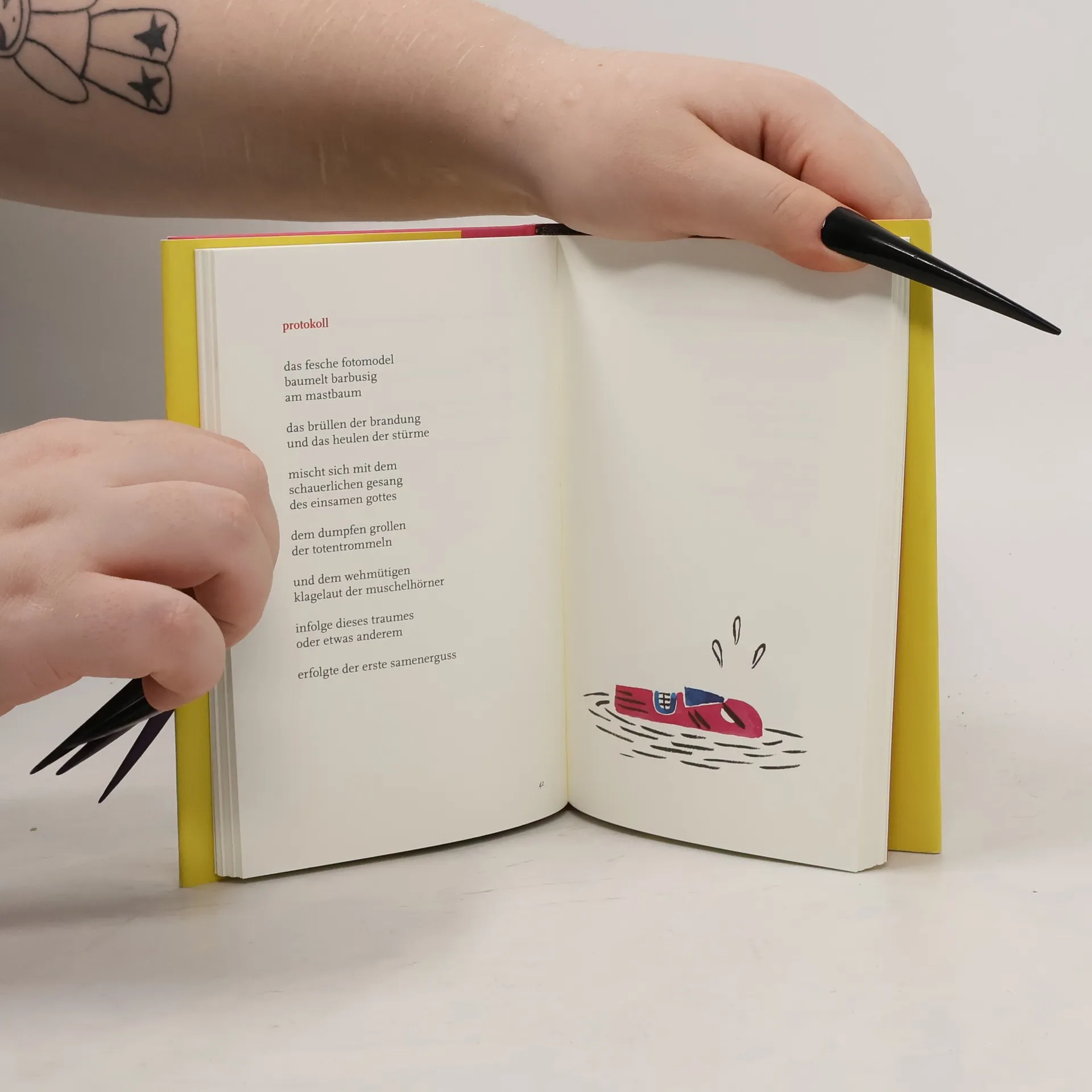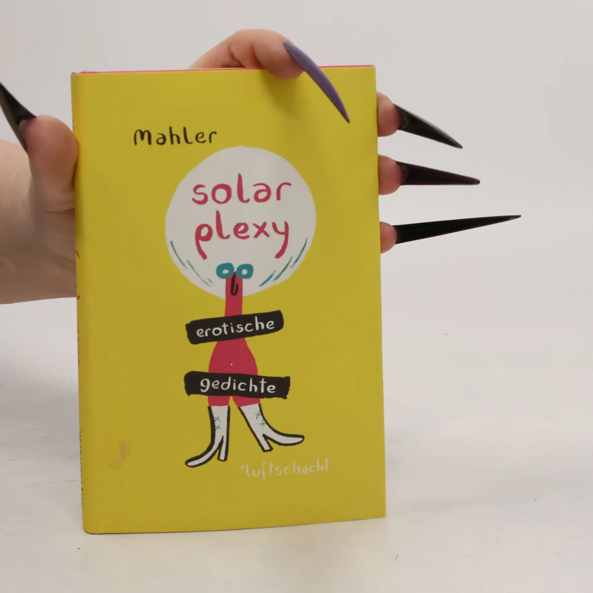 Die Grenze zum Perversen ist nicht leicht zu ziehen, heißt es in Nicolas Mahlers Gedichtband solar plexy. Gerade darin liegt auch der Reiz dieser poeto-erotischen Gratwanderung. Sexorgien feiert man ja bekanntlich lieber aus sicherer Entfernung. So erspart man sich einiges, was Mahler seinen Figuren nicht erspart: Bettunfälle, gepaart mit sexuellem Versagen am Wochenende, Ejakulationsversuche, die viel zu oft als olympische Disziplin verstanden werden, und sich beim Zungenkuss selbst auf die Zunge zu beißen ist natürlich besonders bitter. Manchmal ist es eben besser, sich der Wirklichkeit zu entziehen und potenten Jünglingen, künstlichen Gliedern und lüsternen Mädchen den Vortritt zu lassen, denn schließlich können wir nicht alle profi-bumser sein. Nach dachbodenfund und in der isolierzelle, in denen sich Mahler erst Spielzeugauktionskatalogen, dann Hobby- und Technikmagazinen widmete, entstammen die Gedichte von solar plexy, dem finalen Band der Reihe, dem Sprachmaterial von Erotikzeitschriften. Dass das Vokabular des Erotikjargons zuweilen erheiternd, skurril oder einfach nur traurig sein kann, ist bekannt, dass man daraus aber etwas macht, dass all das zugleich ist und noch dazu poetisch, das ist ganz alleine die Leistung Mahlers, der diesen Gedichtband noch mit dreißig Aquarellen krönt.
