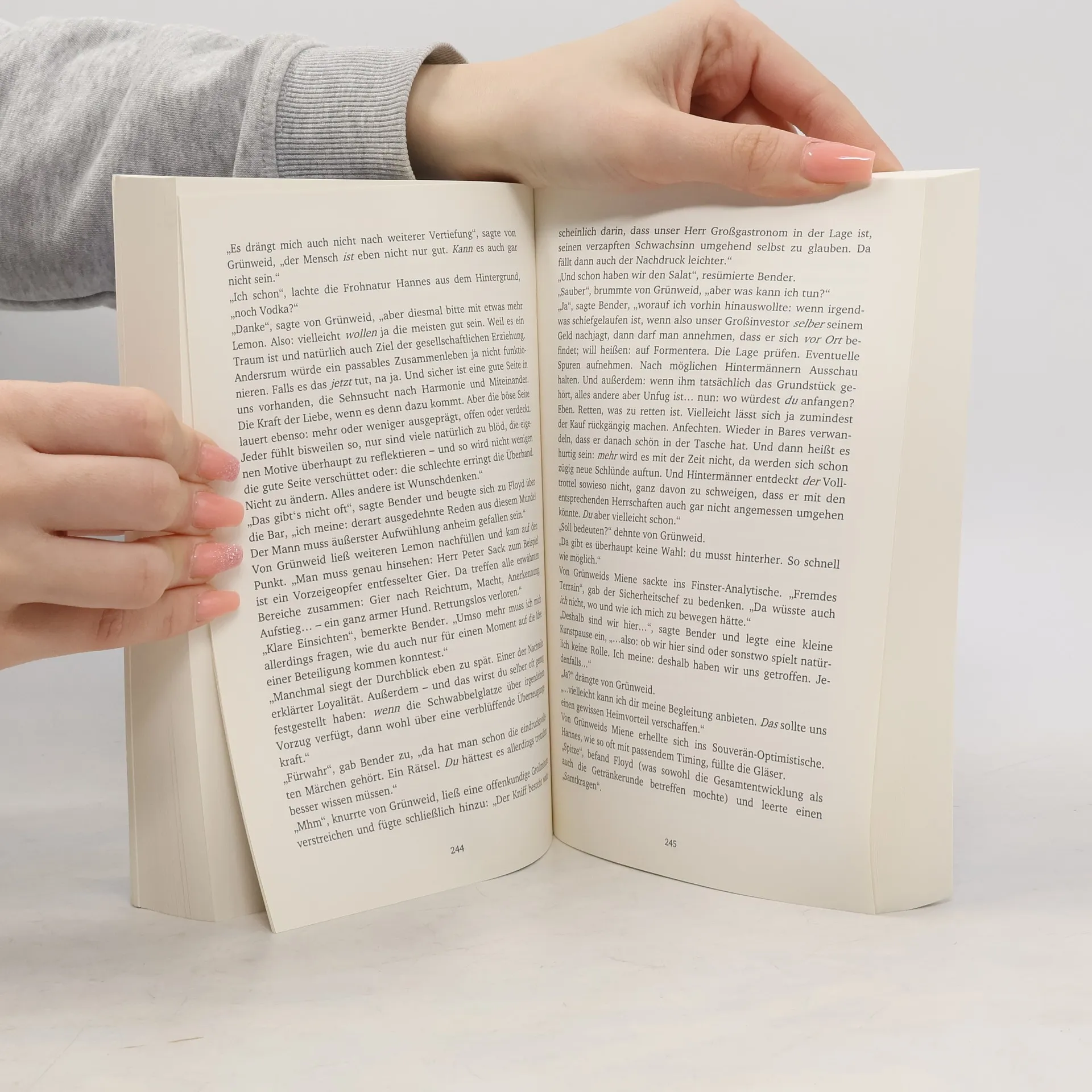Ein Ex-Athlet und Gelegenheitsdenker, ein größenwahnsinniger Tanzschuppenbetreiber und ein stark verstimmter Sicherheitschef - unterwegs in verschiedener und doch auch eng verbundener Mission. Es kommt zu geschickten Gaunereien eines "Grafen", einem Folgebetrug des Gernegroßgastronomen und zu ausgeschlafenen Rettungsmanövern der bald alliierten Restprotagonisten; vor allem aber zum willkommenen Mitwirken einer Fülle schillernder Weggefährten. Trinksportler und Philosophen treten ins Geschehen, Weiberhelden und Misanthropen, einbeinige Gespielinnen, Dean-Martin-Imitatoren und verblichene Schützenkönige. Unverwüstlich trifft man sich in deutschen und später balearischen Lokalen, liebt eine ganz bestimmte Insel und lässt ungebremst Lebensentwürfe aufeinanderprallen, analysiert die Weltgeschichte und würdigt die Komik des Alltäglichen - und sorgt schließlich für ein mehrheitlich versöhnliches Finale ...